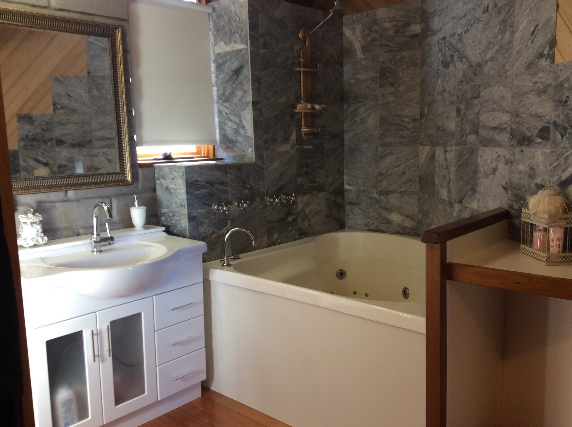 Large upstairs master bedroom with leadlight skylights, walk in robe, marble tiled ensuite with spa and balcony.