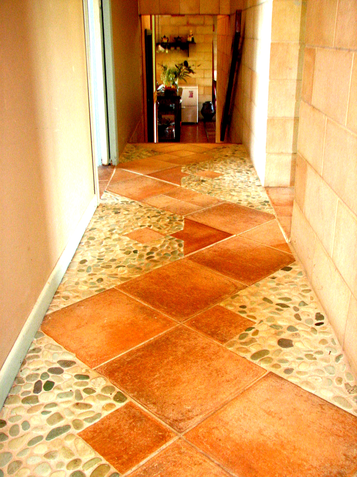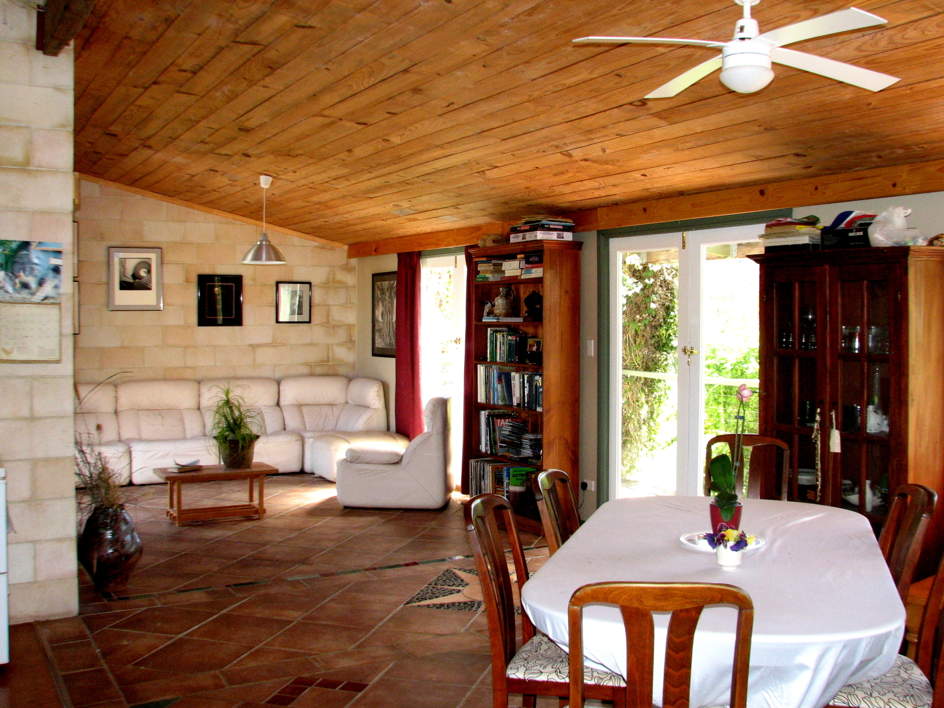 Mon Abri features open plan living downstairs, with four bedrooms plus one bathroom w separate waterless toilet up the seven steps to the upstairs split level floor.
