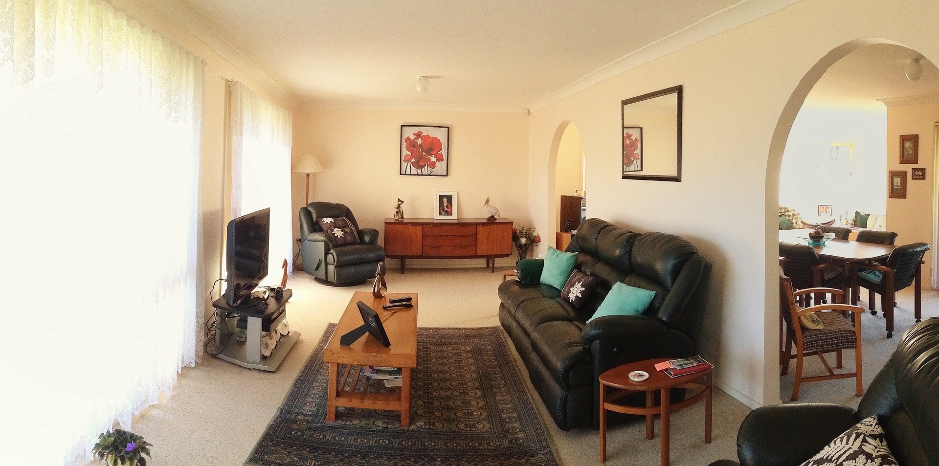 The lounge area transitions into a expansive L shaped family/dining area.