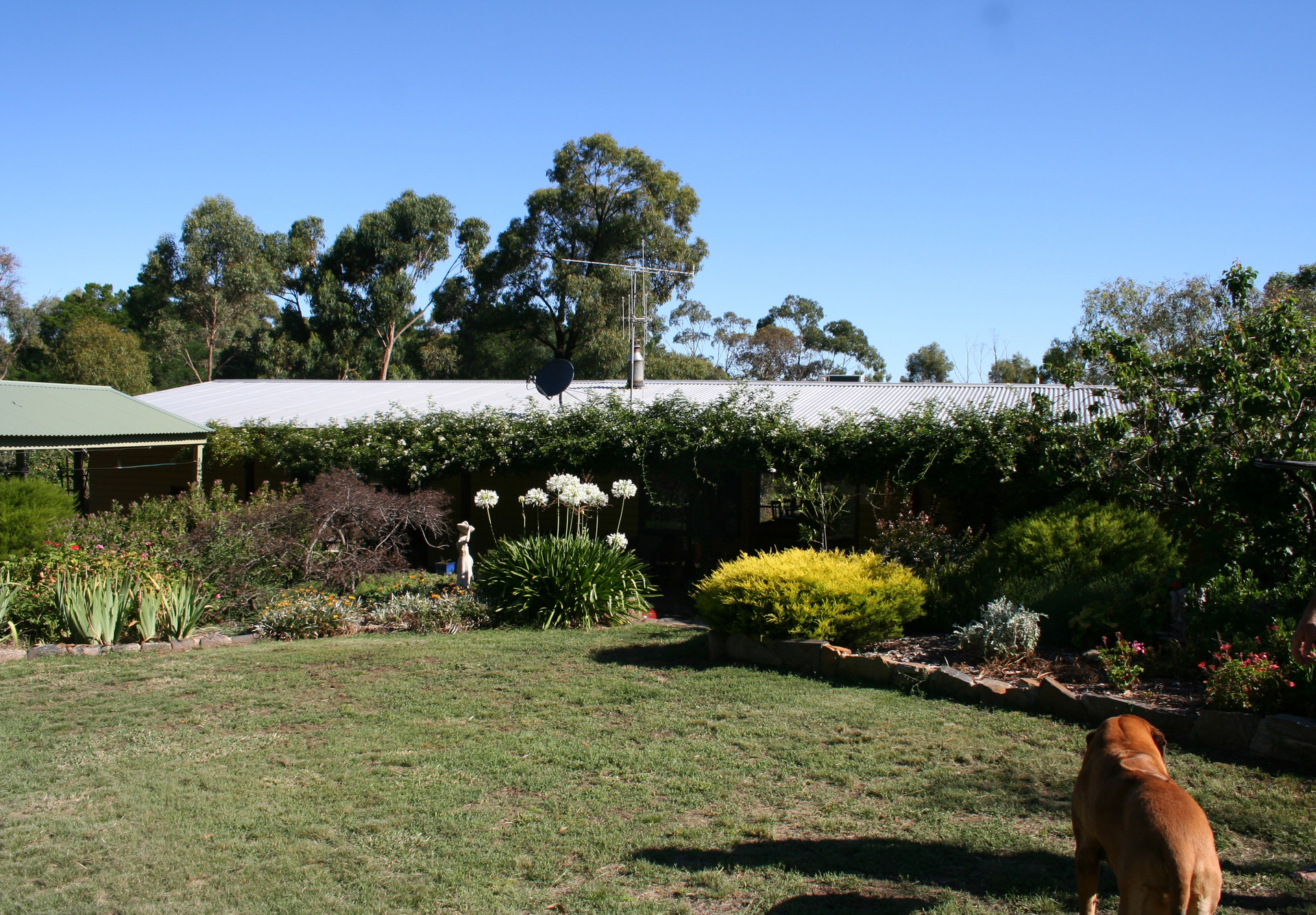 Set on the edge of town and close to bushland the spacious 3.5 acres has mature gardens with abundant bird life and native gums, 3 dams, double carport, workshop and open storage, small fenced paddocks, town water plus 5,000 gallon rain water storage, and a prize winning organic vegetable garden..