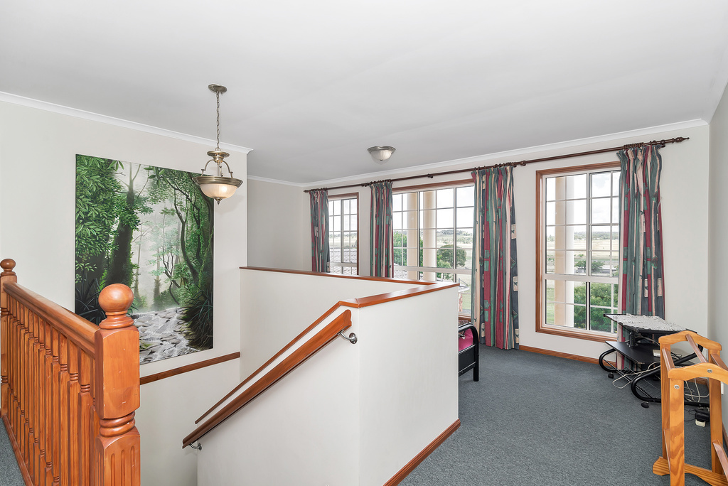 This huge double storey executive style brick home on 5 acres, includes : 5 bedrooms, office, 2 ½ bathrooms, 3 living areas, including media room, lounge and mezzanine sitting area with great views. In addition a large kitchen and dining room with space for a 10 seat table will satisfy all your entertainment needs. A large 9 x 9 metre shed should keep the guy and his mates happy too.