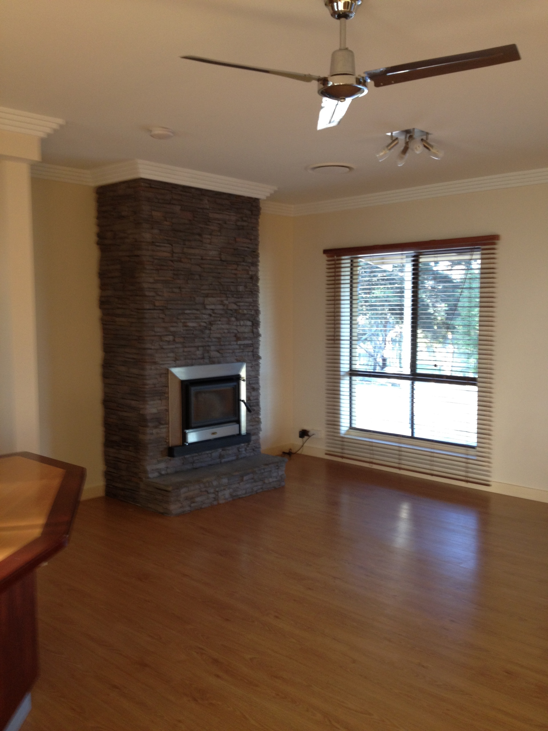 This adjoins the open living/dining area complete with large fan forced combustion heater.