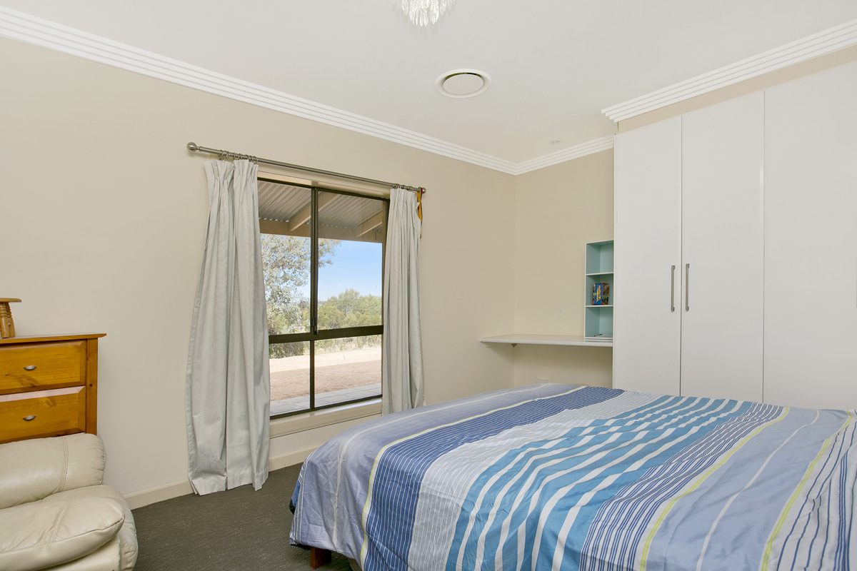 The master bedroom is a parents retreat featuring cedar french doors overlooking the Clare Valley with large WI robe and ensuite.