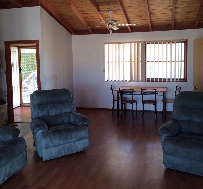 open plan lounge/dining areas with s/c heater and glass doors leading out to the rear pergola.