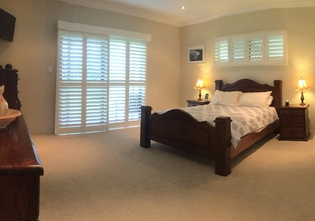 The King Size main bedroom with built in cupboards has a large ensuite with Double Shower, Twin Basins and toilet. The large sliding glass doors to the bedroom open onto their own private verandah area overlooking the gardens. Both windows and doors in the main have quality plantation shutters fitted for that added touch of privacy. The other bedrooms are all queen size,and all have built in sliding mirrored robes. All of the The bedrooms have also been finished with quality carpet and window furnishings. A Large Bathroom with separate Toilet and Powder Room are ideal for the large family or guests. There is a spacious separate office at the front of the house that could also easily be turned into an extra bedroom if required.