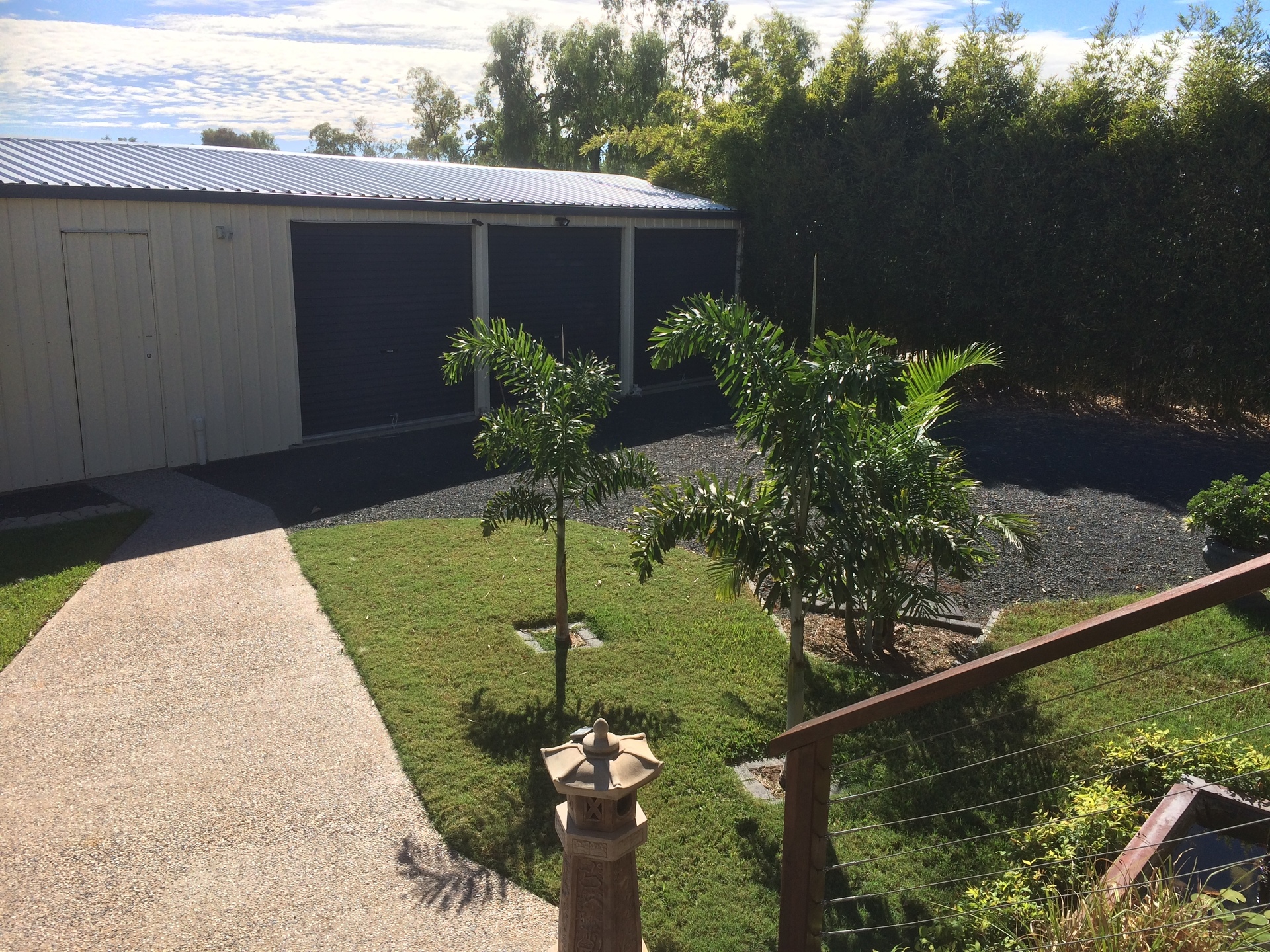 A Grid Connected 6kW Solar System, will help with the increasing power bills. The block has town water supplied, however all rain water from the shed and home are harvested completely and stored for use in the gardens by the 24000 Gallon Colourbond Rainwater tank. With a quality Grundfos Pressure pump and 1 1/2" ring main supplying plenty of taps around the gardens, watering should not be an issue.