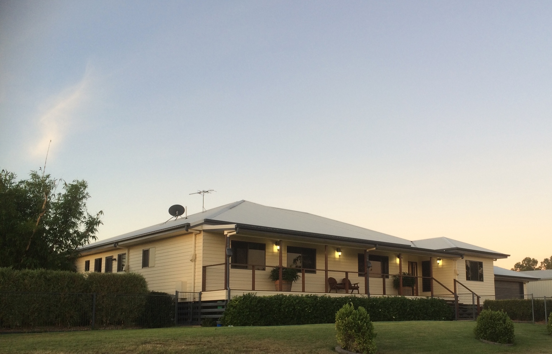 The large front verandah provides shade to several of the bedroom windows and living area to help keep the house cooler on those long summer days. With the added benefit of providing somewhere to sit and enjoy watching late summer storms rolling in while enjoying a cold one.