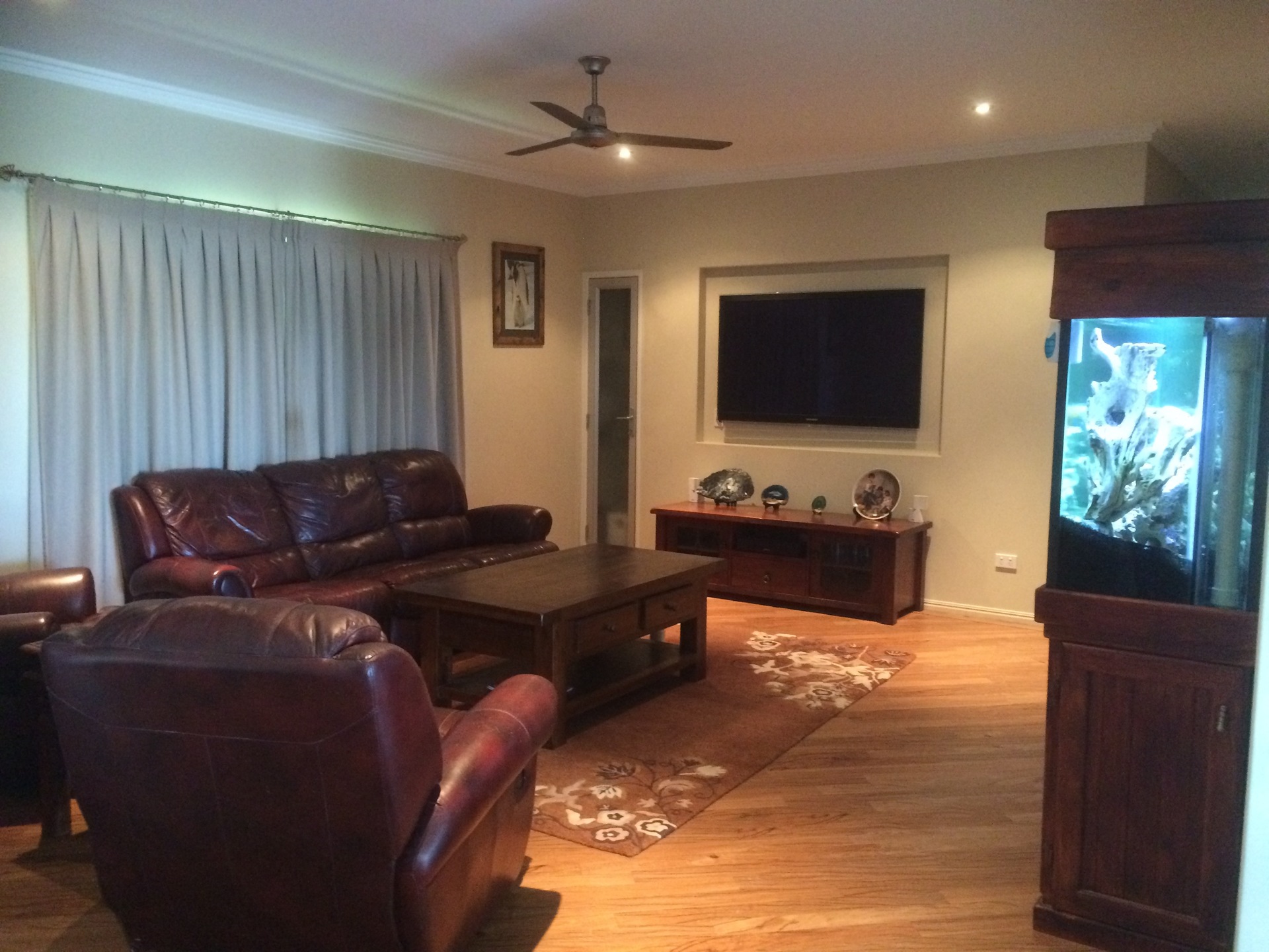 There is a large formal Dining Room, or use as a Pool /games room for the kids. All rooms are complete with Fujitsu Reverse Cycle Air conditioning and Ceiling Fans. The Laundry is built to accommodate this size home with large linen press and overhead cupboards providing ample storage. More storage is also provided with a large sliding cupboard in hallway. The built in entertainment cabinet in the lounge room discreetly hides all wiring to entertainment appliances including Bose in ceiling speakers to deck and lounge for those movie and party nights.