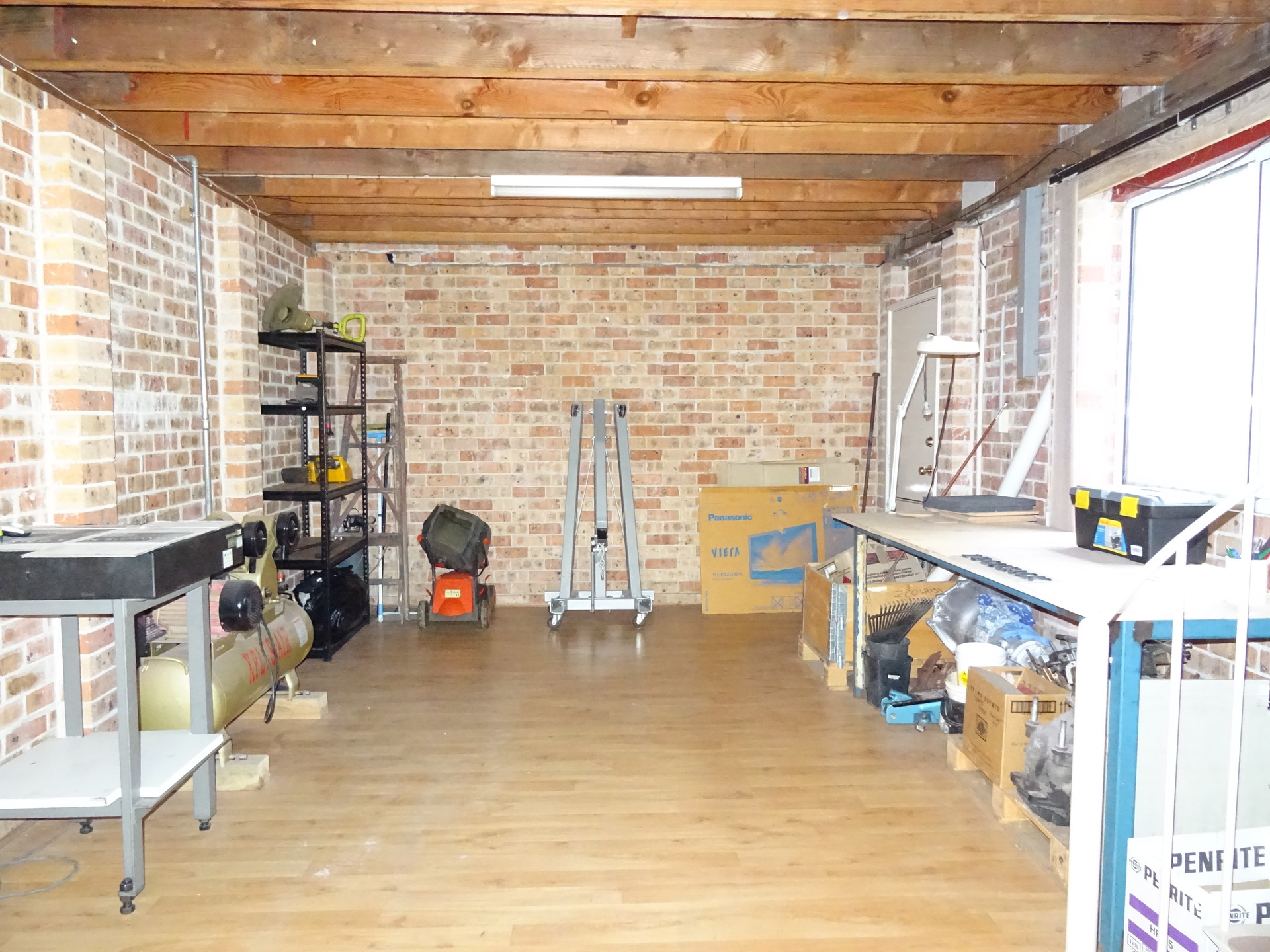 There is large lower ground area, with internal spiral staircase and separate side access door. Currently used as an enormous workshop / man cave. This area has potential to be converted into 2 bedrooms, with a second bathroom and rumpus room, or a separate granny flat (STCA) and still have a workshop or storage area.