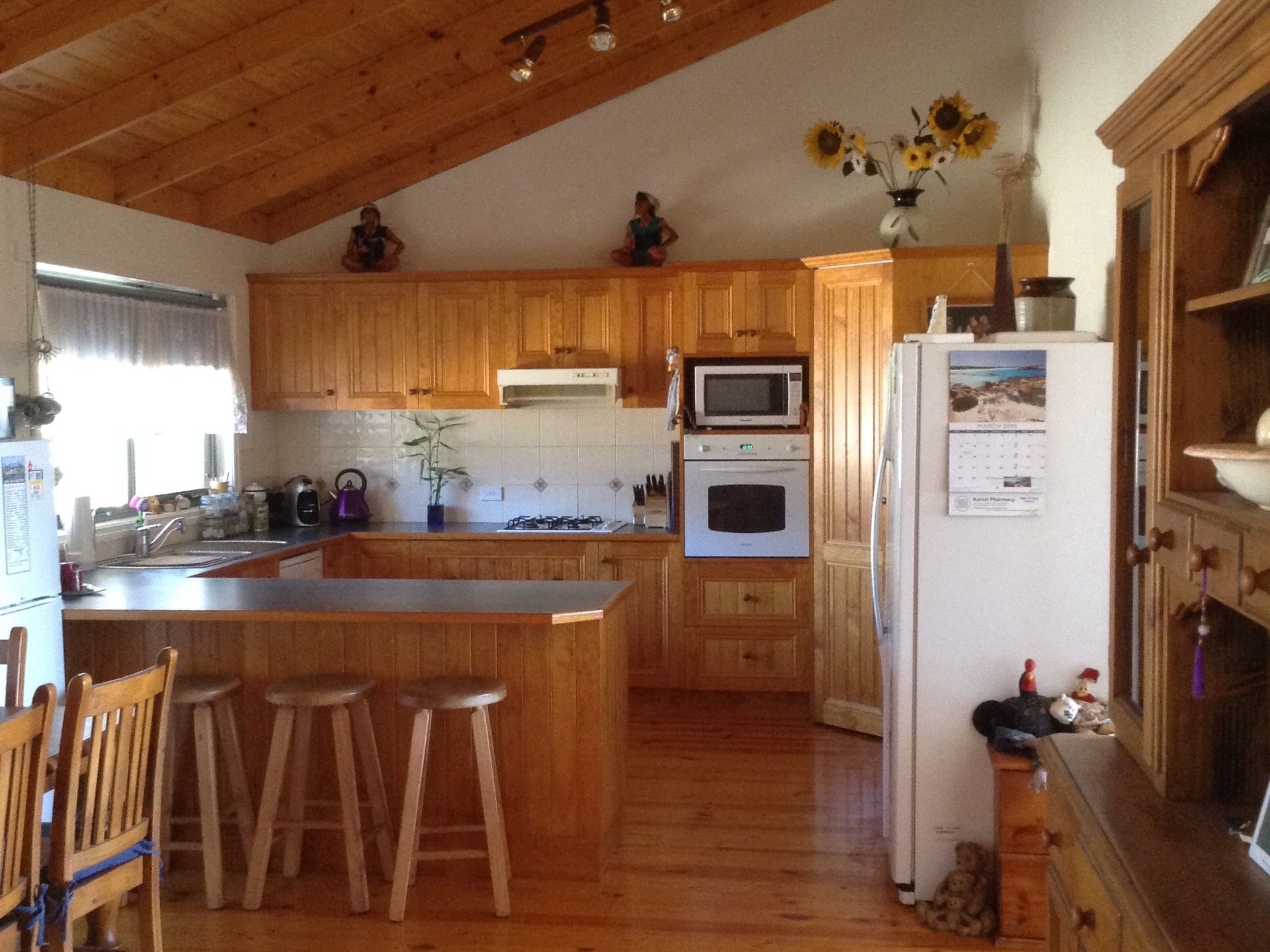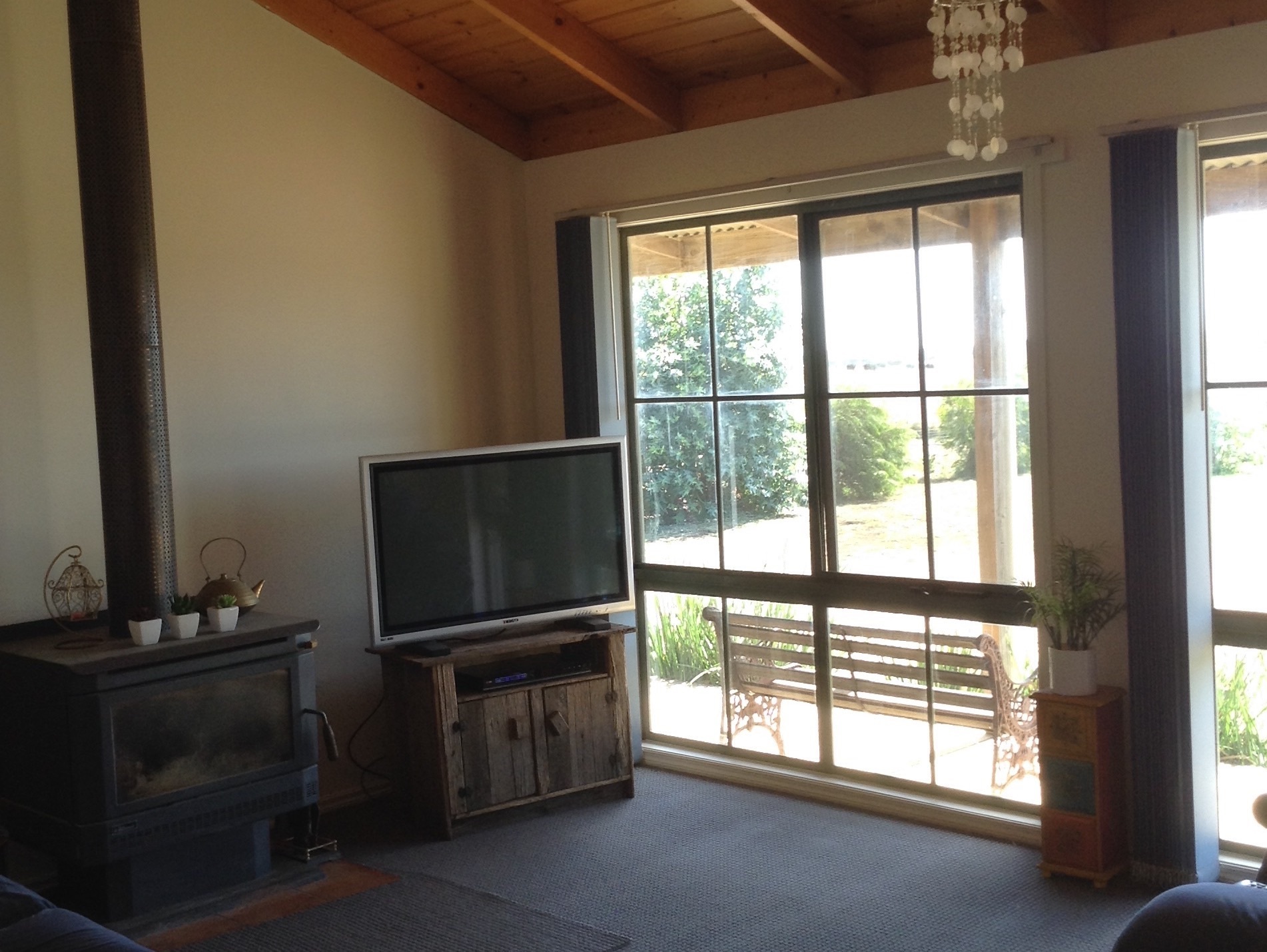 Western red cedar home consisting of 3 bedrooms, (main with WIR & ensuite and other two with built in robes), separate lounge with open plan kitchen, dining & family room. Light filled main bathroom with corner spa. Ceiling fans throughout. Cathedral ceilings, timber floors, new carpet, freshly painted, new reverse cycle air con, energy saver gas heater & wood fire with internal/external wood box, large verandah around entire house. Large concreted out door entertainment area, gas boosted solar HSW.