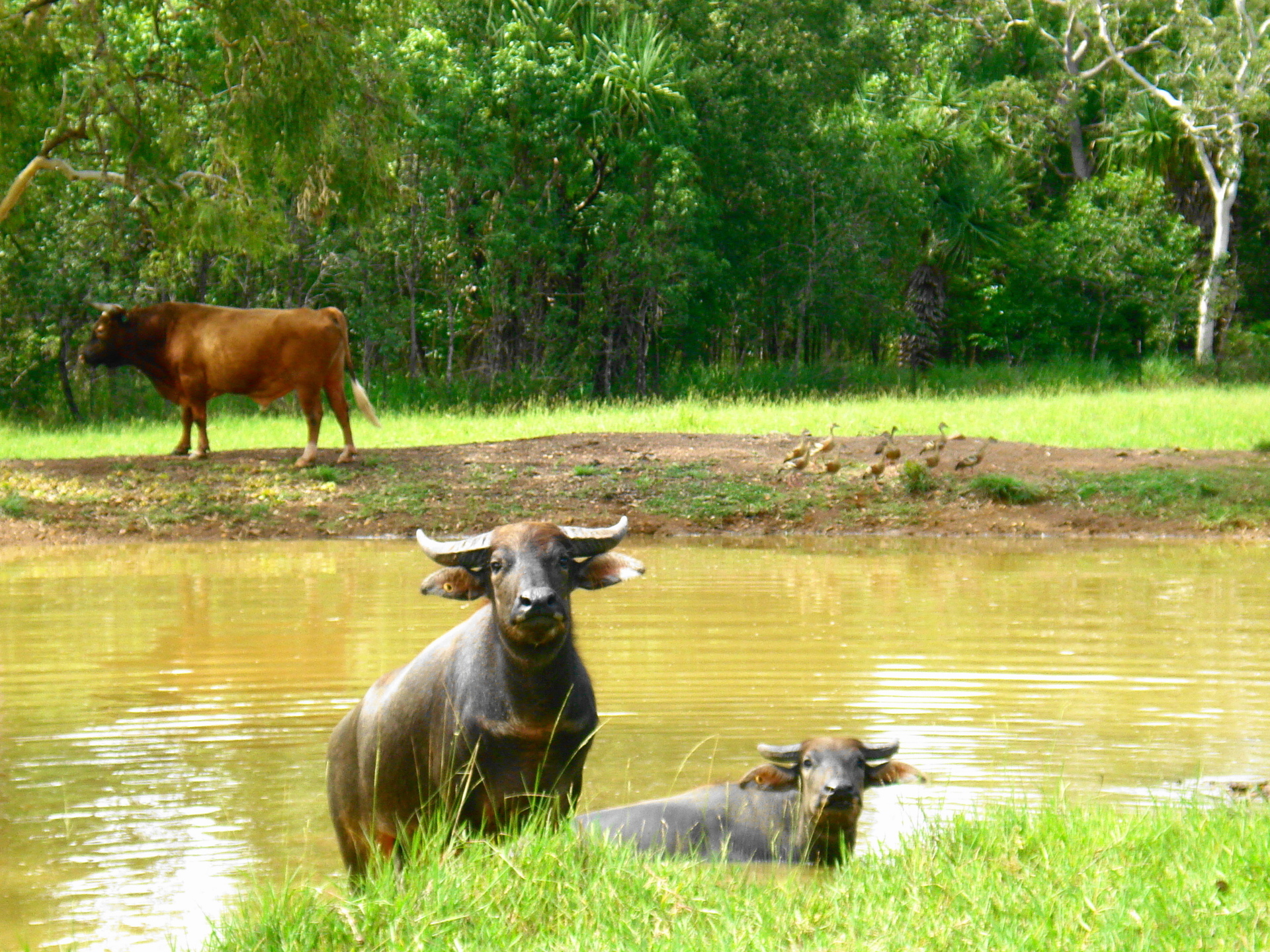 This diverse and unique natural habitat attracts a great variety of bird life including Jabiru, Black Cockatoo, Muscovy & Whistler ducks, wallabies, wild pigs. It's also home to 2 pet buffaloes.
