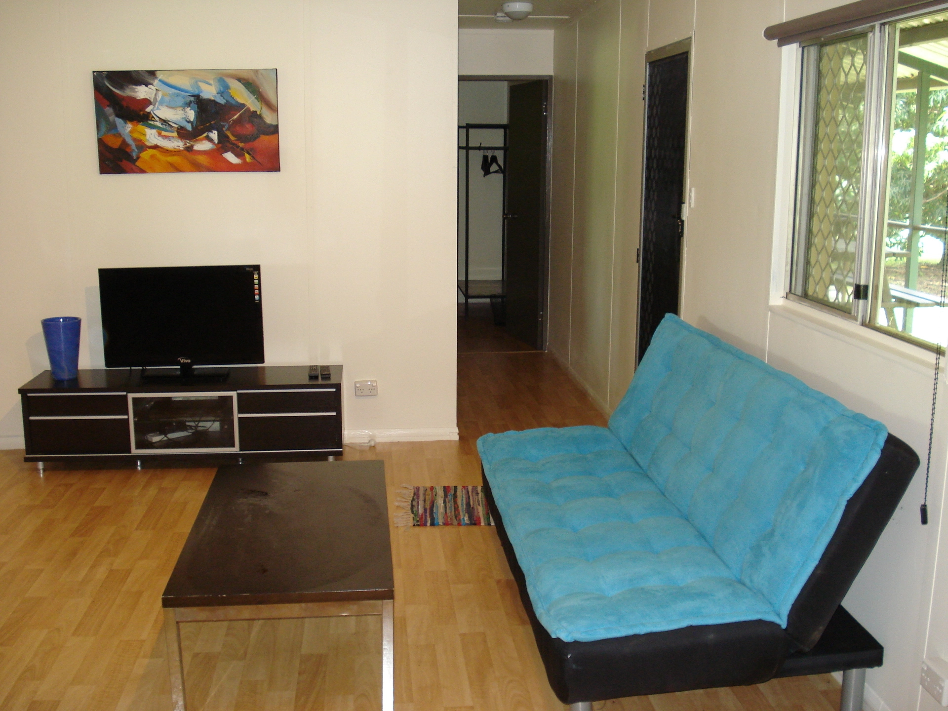 Additional 1 bedroom semi elevated cabin with undercover timber decking at front and rear with separate bathroom/laundry.