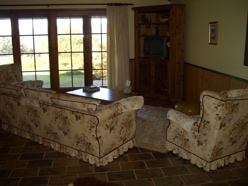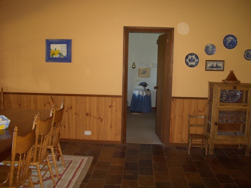 Accommodation includes entrance, lounge, dining, family, kitchen, three bedrooms, ensuite, walk-in robe, bathroom, laundry, toilet and store room. Floors are of slate tile, there is a slow combustion fire and reverse cycle air conditioning units. The house is about 350m2, including verandahs on all sides and car port, all contained under the one roof (colour bond). Constructed in 1990s, concrete slab with timber frame, treated pine weatherboard finish.