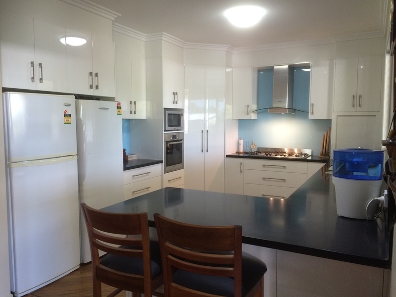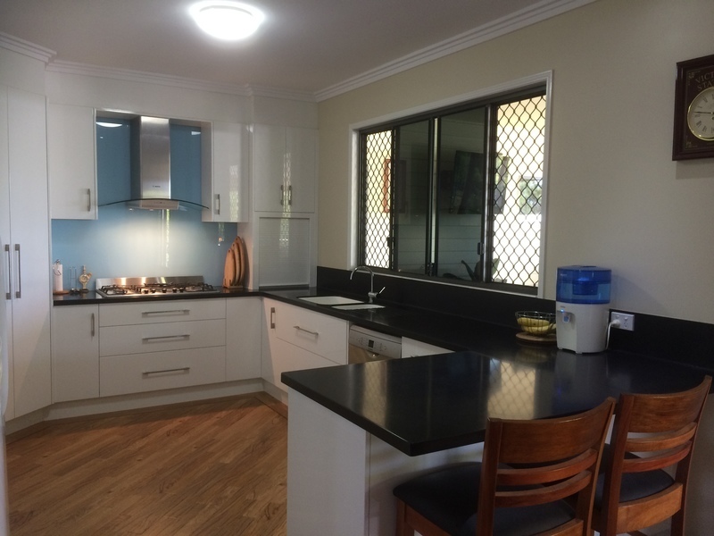 Large Executive Flood Free Family Home with Double Garage on a 1 1/2 acre block with a spacious entertainment area overlooking the extensive gardens. The Executive Quality Chefs Kitchen has a one piece moulded Corian Bench top and basins. Cupboards and drawers are all modern and stylish with quality soft close fittings attached. Glass splash backs have been installed behind cook top and utility bench. Bosch Stainless steel appliances make this kitchen ideal for cooking up a storm for the large family or entertaining and backs on to the large deck area. A large fridge cavity has been included in the design for the larger fridges of today with plumbing installed.