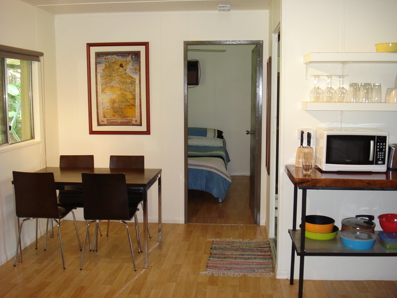 Additional 1 bedroom semi elevated cabin with undercover timber decking at front and rear with separate bathroom/laundry.