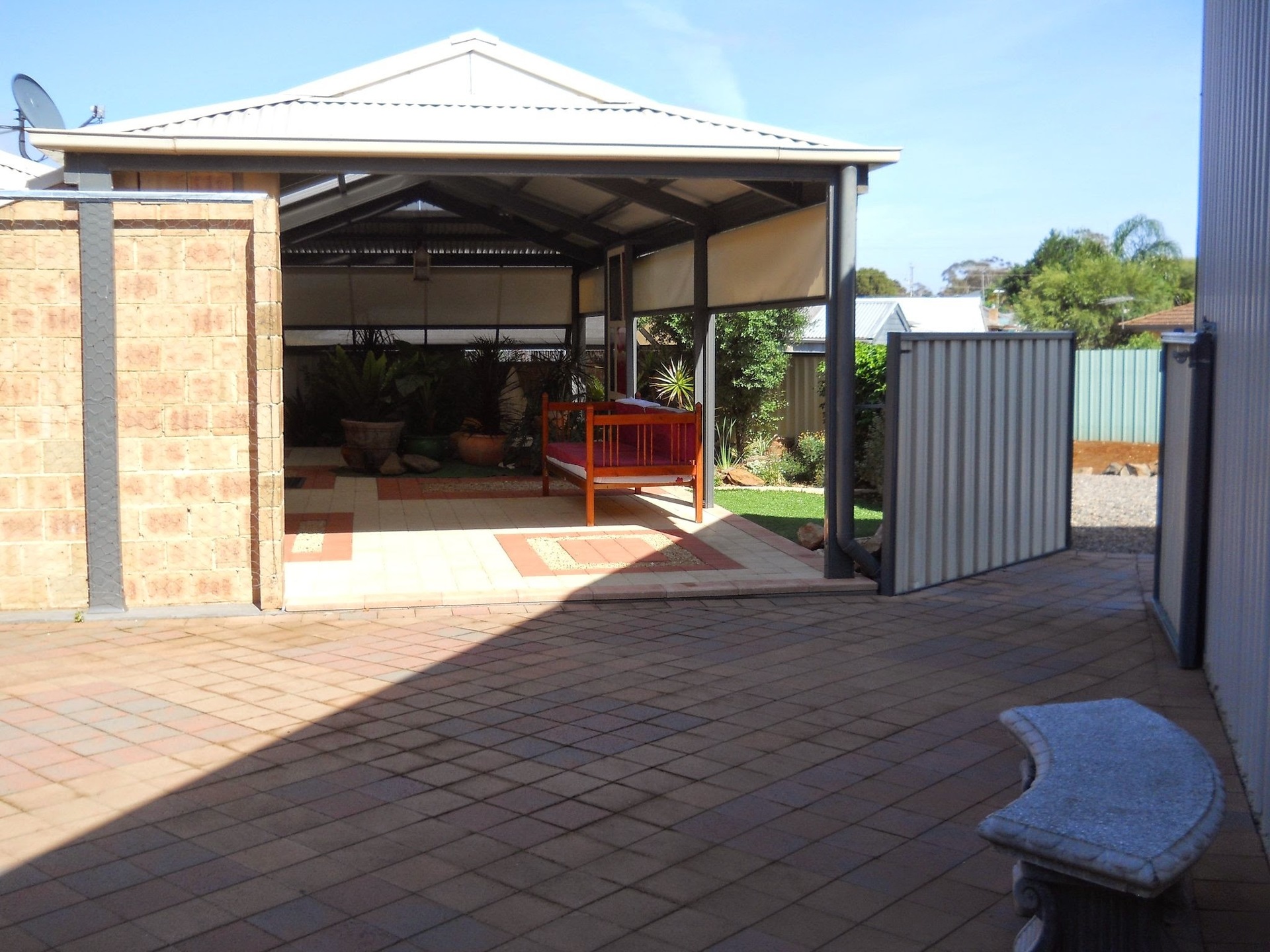 Double carport UMR and parking for multiple vehicles.