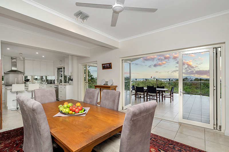 This is a large air-conditioned family home with 5 large bedrooms plus a one bedroom self-contained granny flat, including kitchen and lounge/dining. Fabulous ocean views are enjoyed from the expansive deck facing Cleveland Bay, Castle Hill and the Port of Townsville.