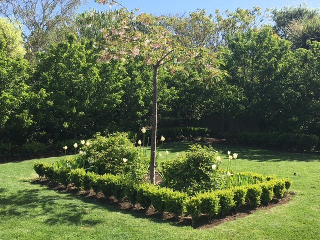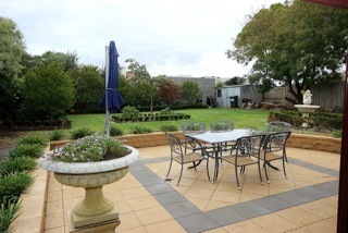 - Private fully enclosed backyard with formal garden