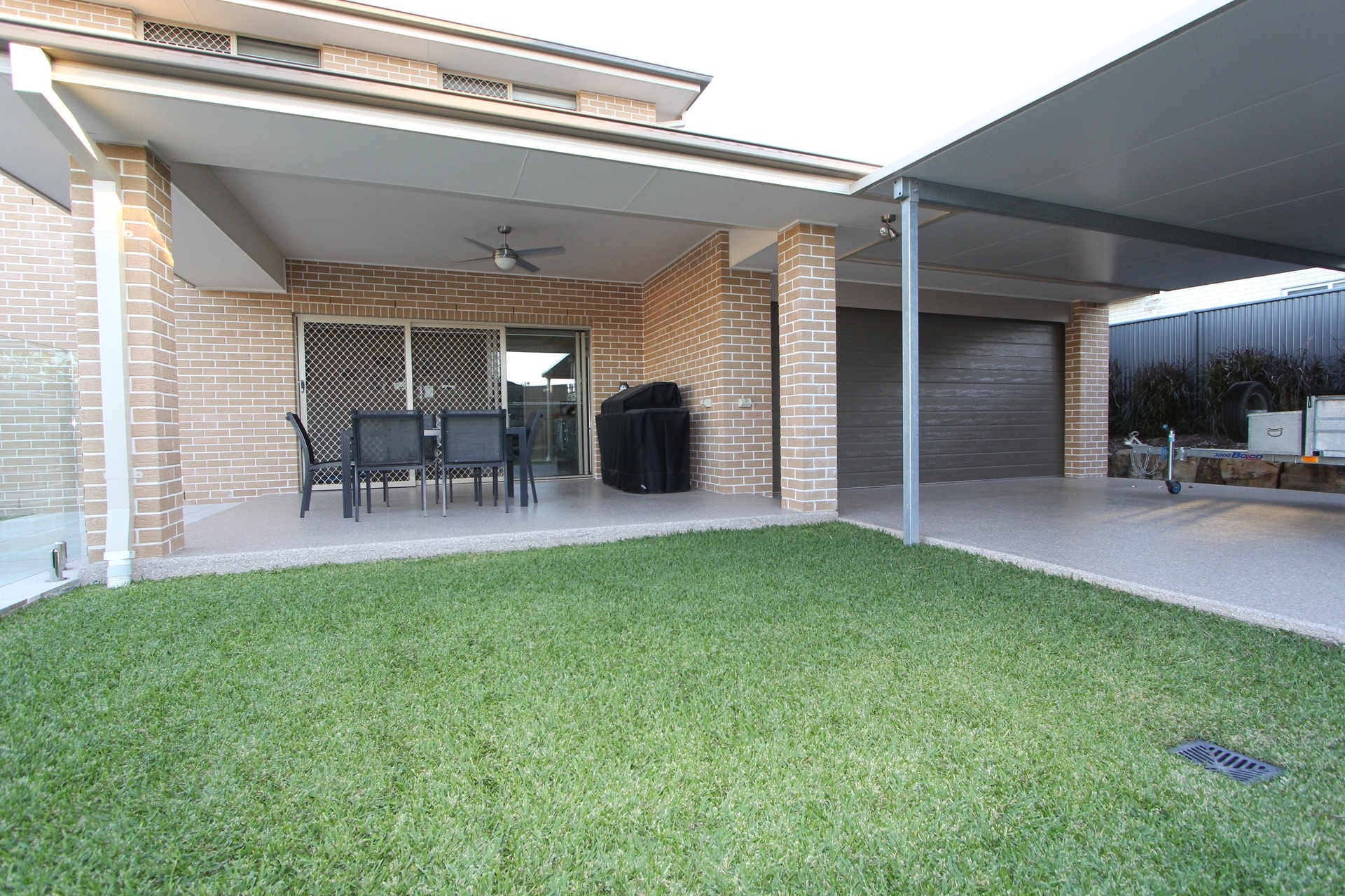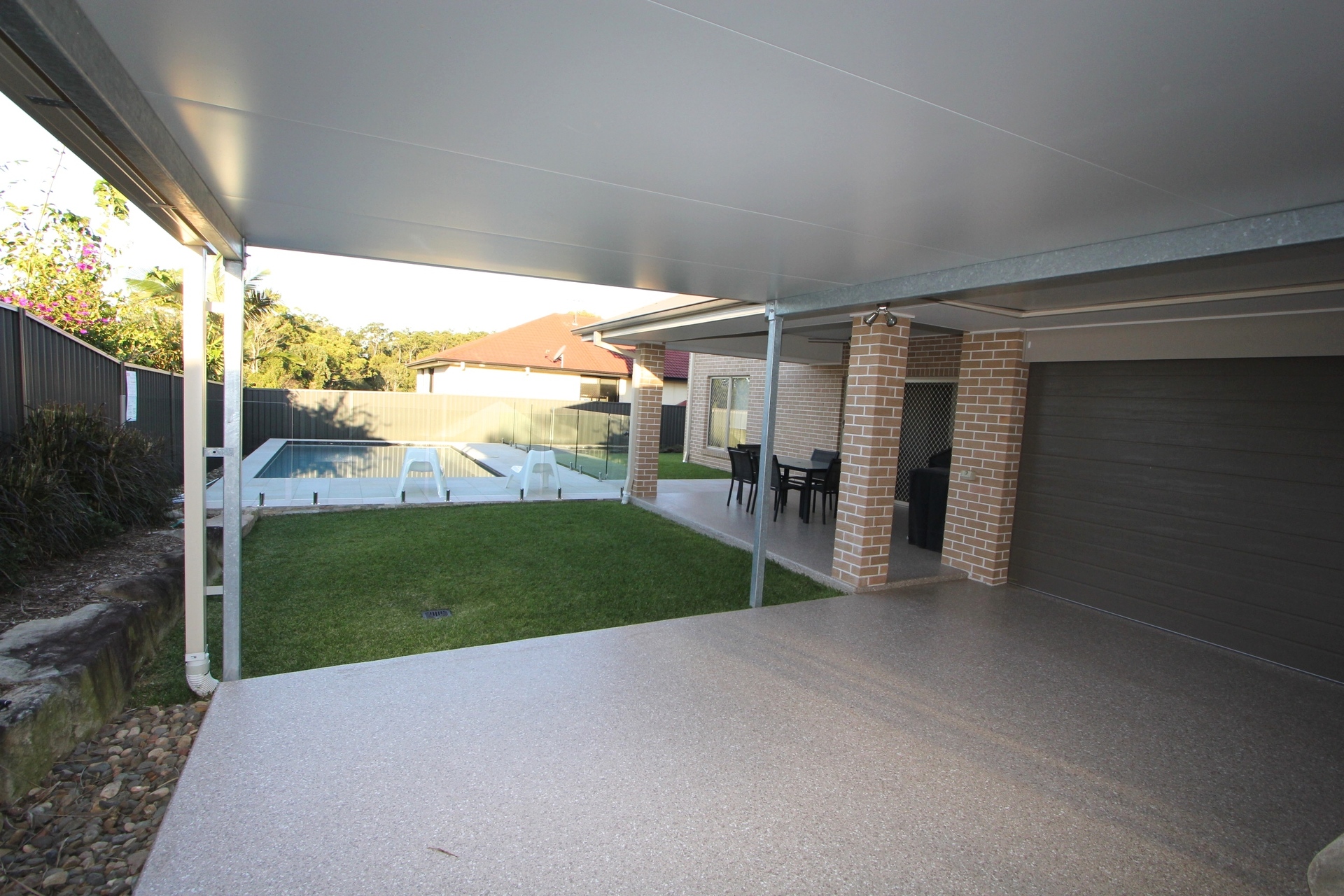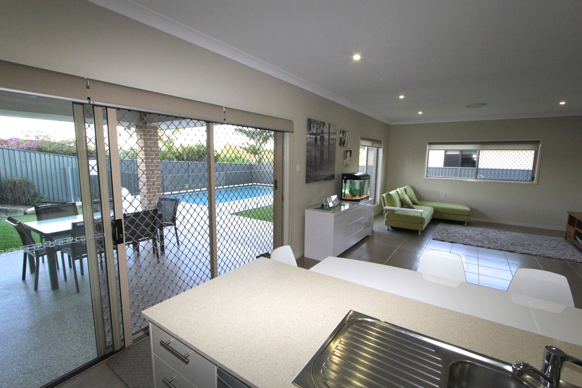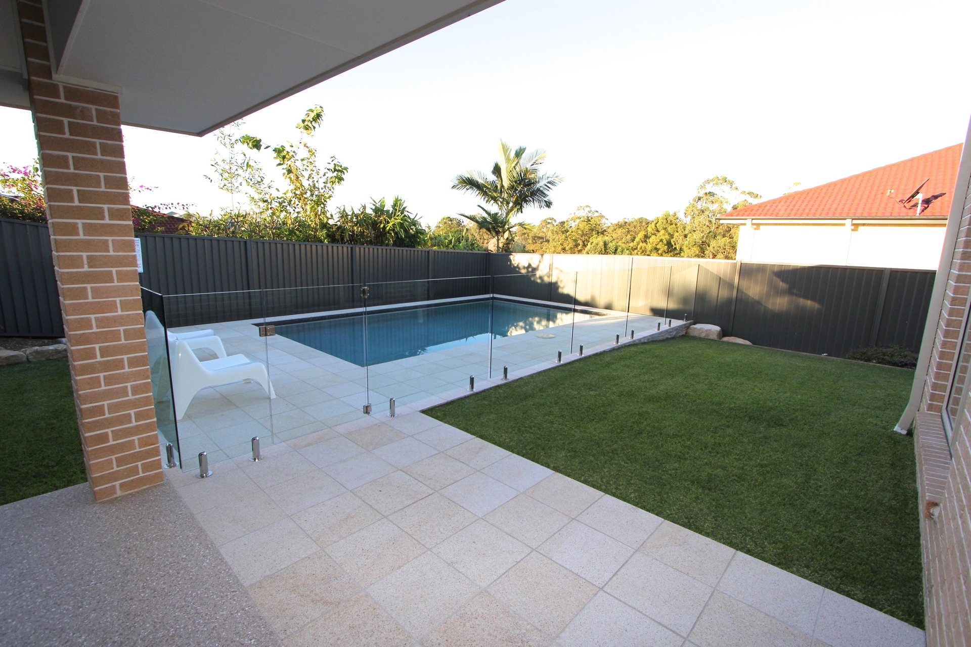 In-ground salt water concrete pool (4m x 7m) with granite tiles and glass pool fence (less than 12 months old).