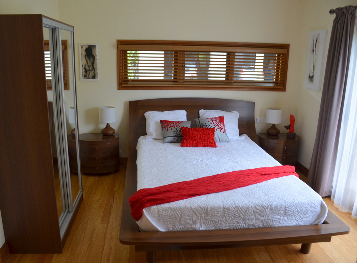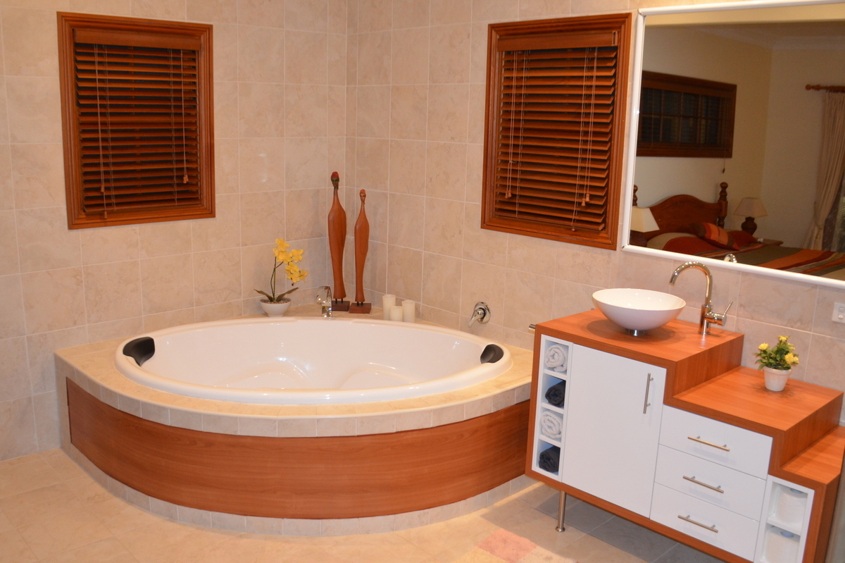 The King size Master Bedroom has a walk in Robe and a huge Ensuite with Twin Bath, separate shower and facilities. The Guest Bedroom opens up to a Deck adjoining the Pool area and also has its own Ensuite Bathroom. The other 2 Double Bedrooms share the third Bathroom with separate Toilet.