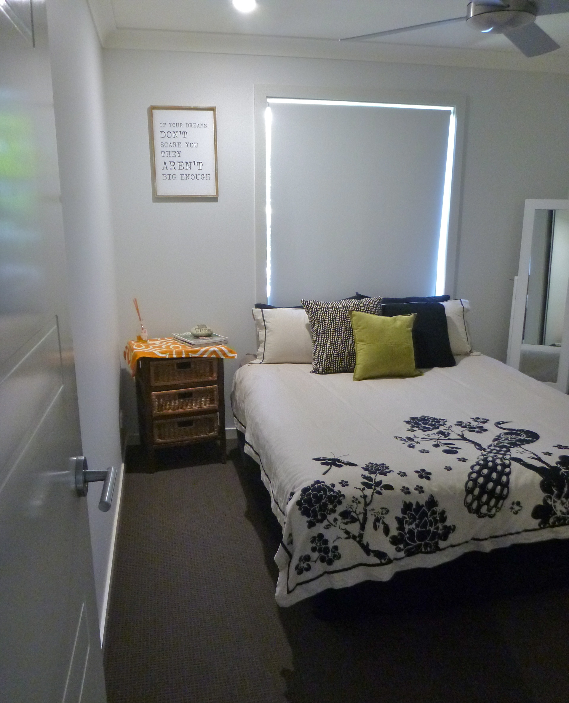 * Screened windows with block out roller blinds