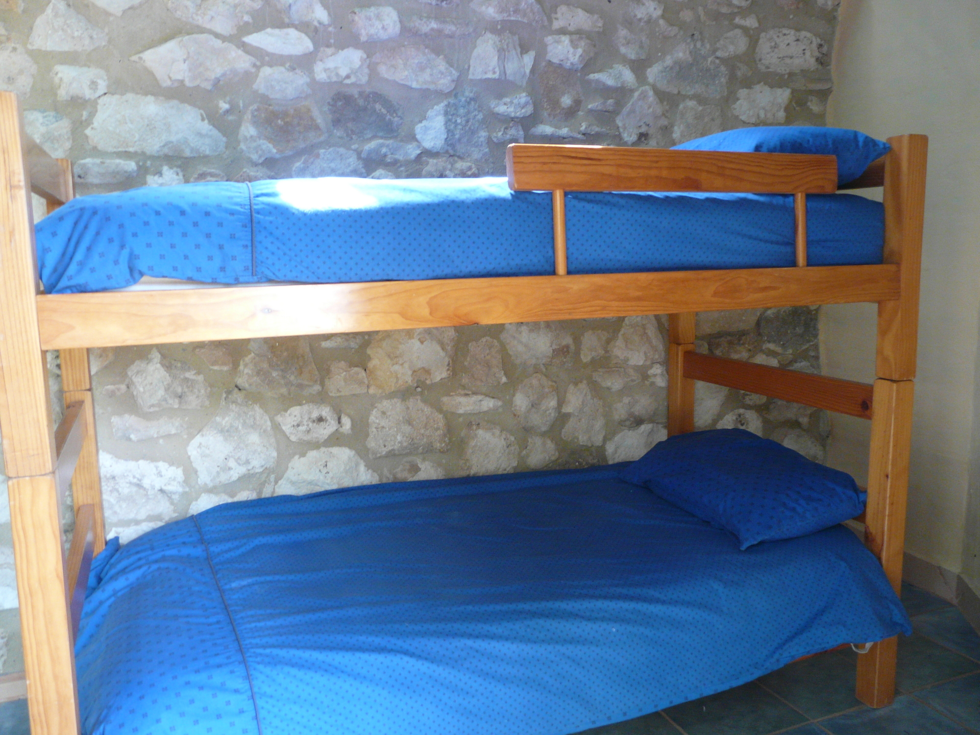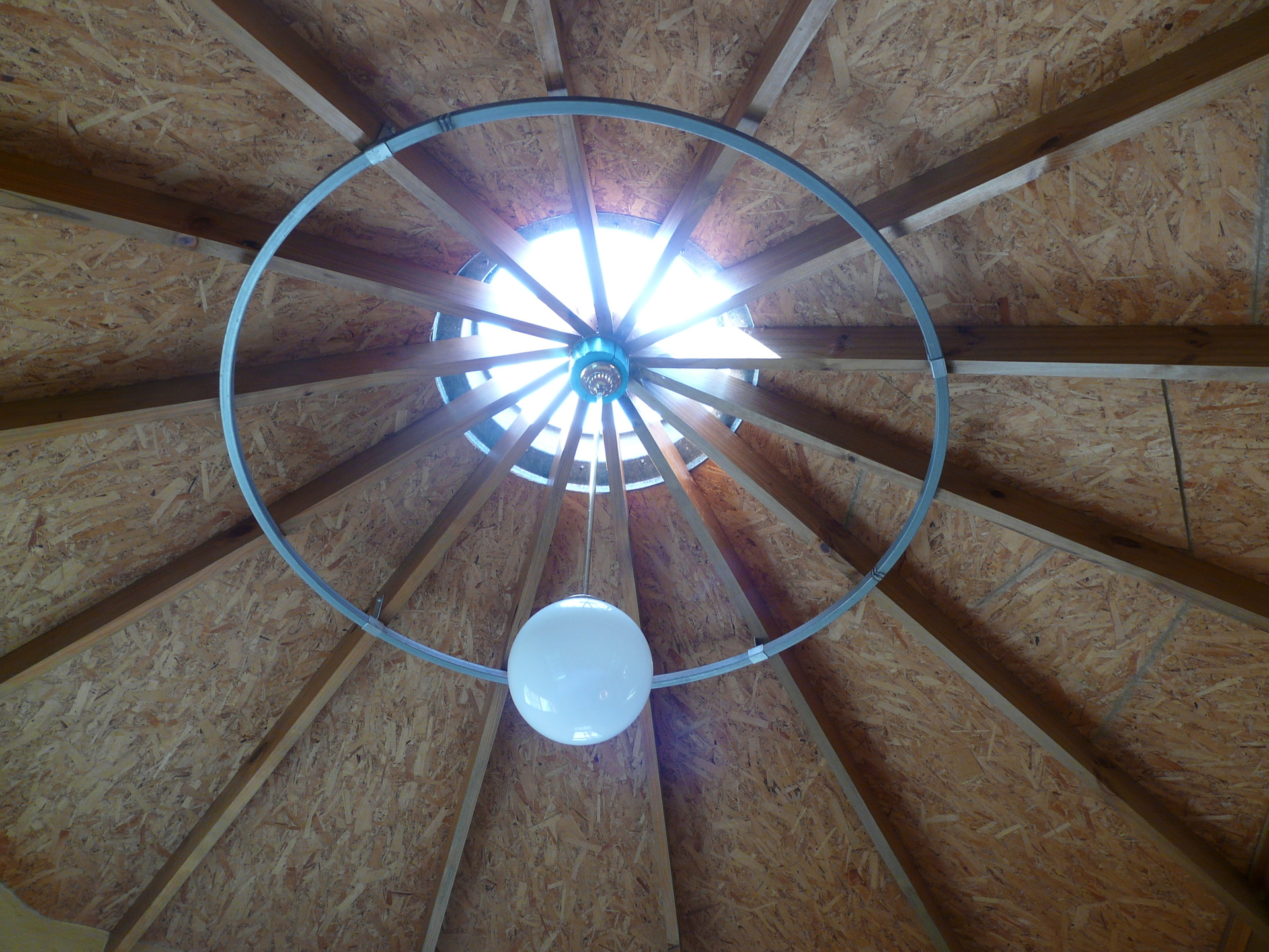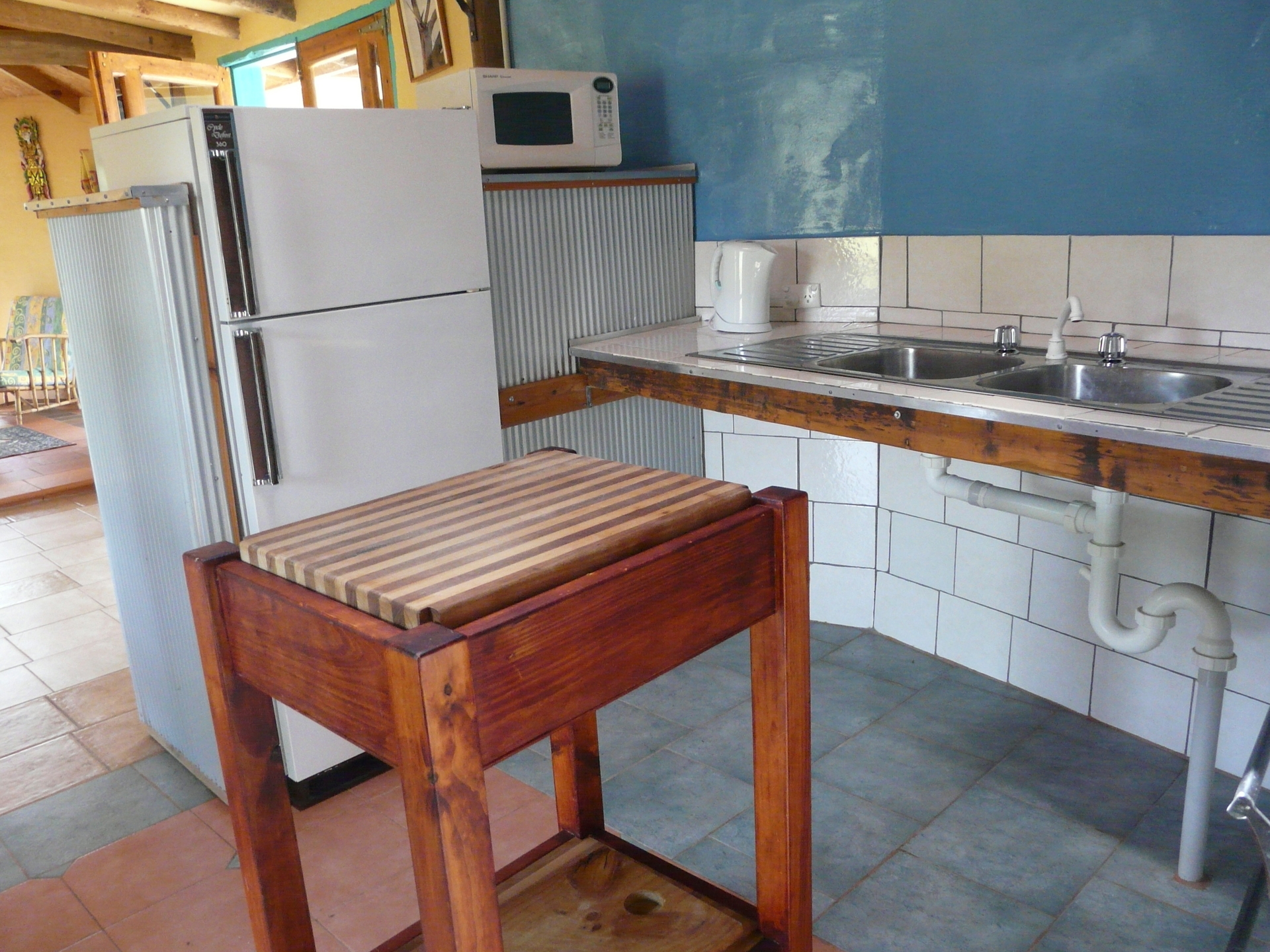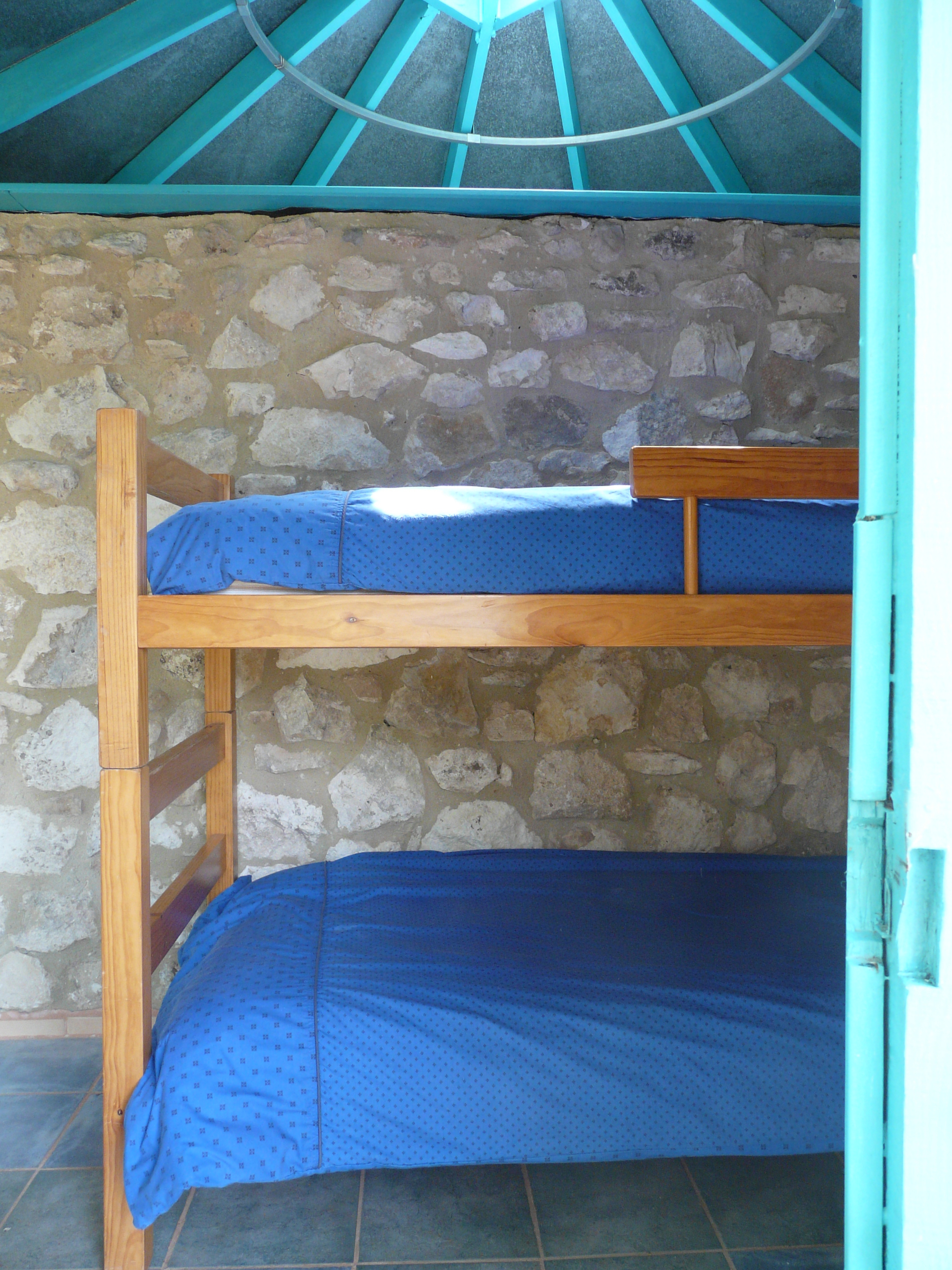 The house has an open planned kitchen, living and dining areas in one building. There are three bedrooms one of which is quite small.All bedrooms are in separate round "pods" which are adjoined by a courtyard giving privacy to each space.Each has a few steps outside to the shared living space and central bathroom.