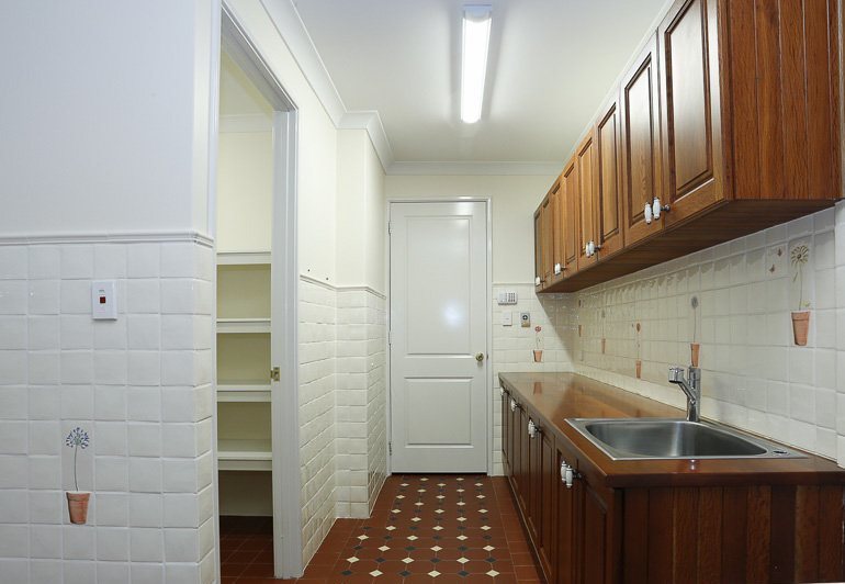 - Extra large laundry with more sheok cabinets, tassellated-terracotta tiling and bonus storage room