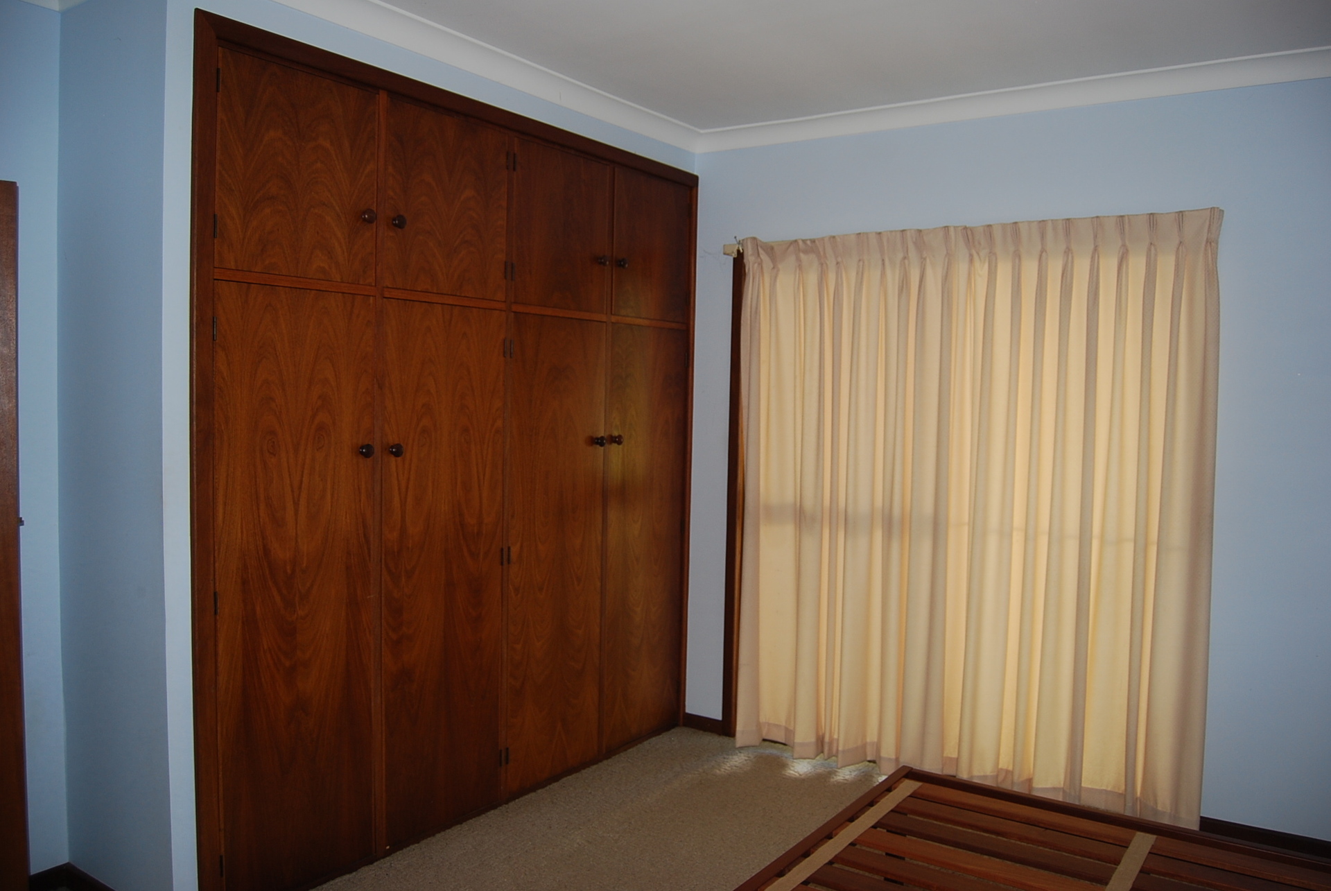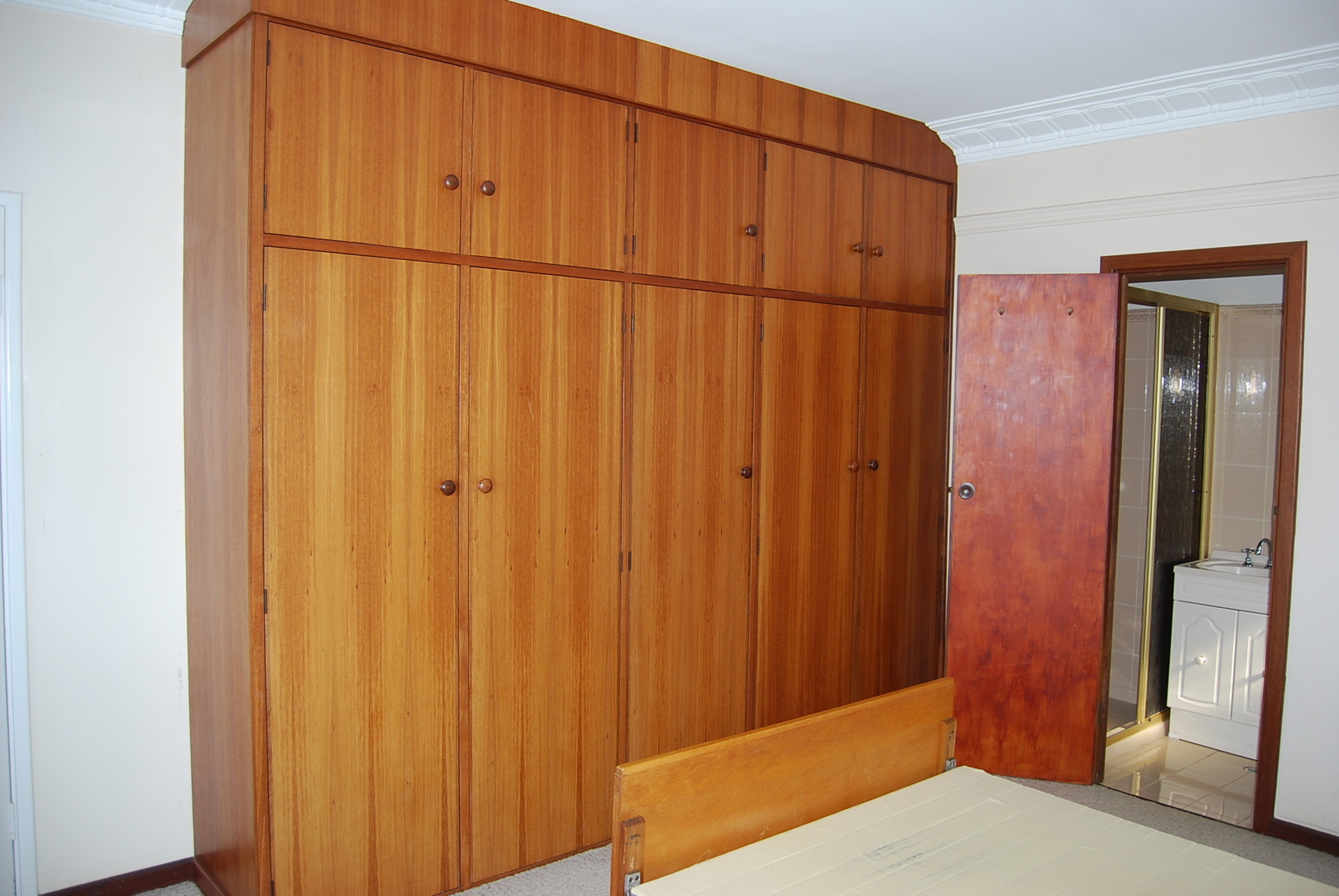 * Wide hall- built in jarrah cupboards, floor to ceiling