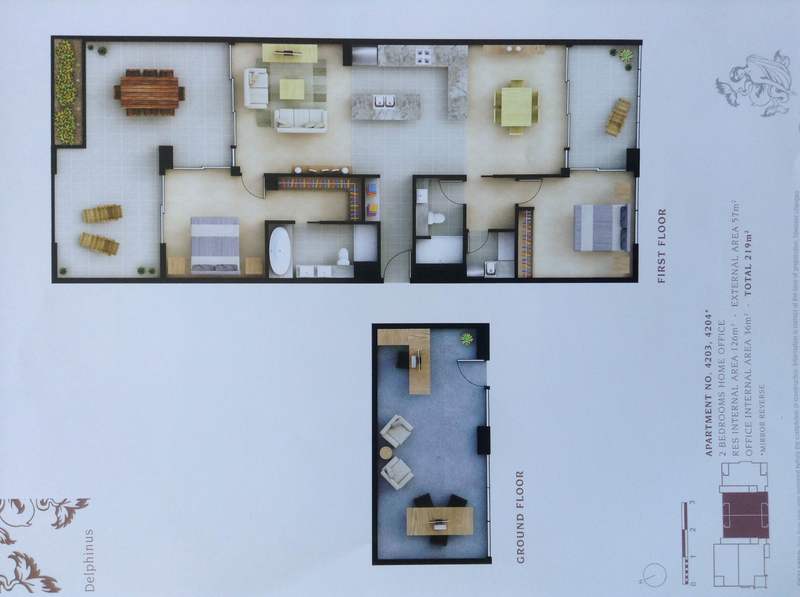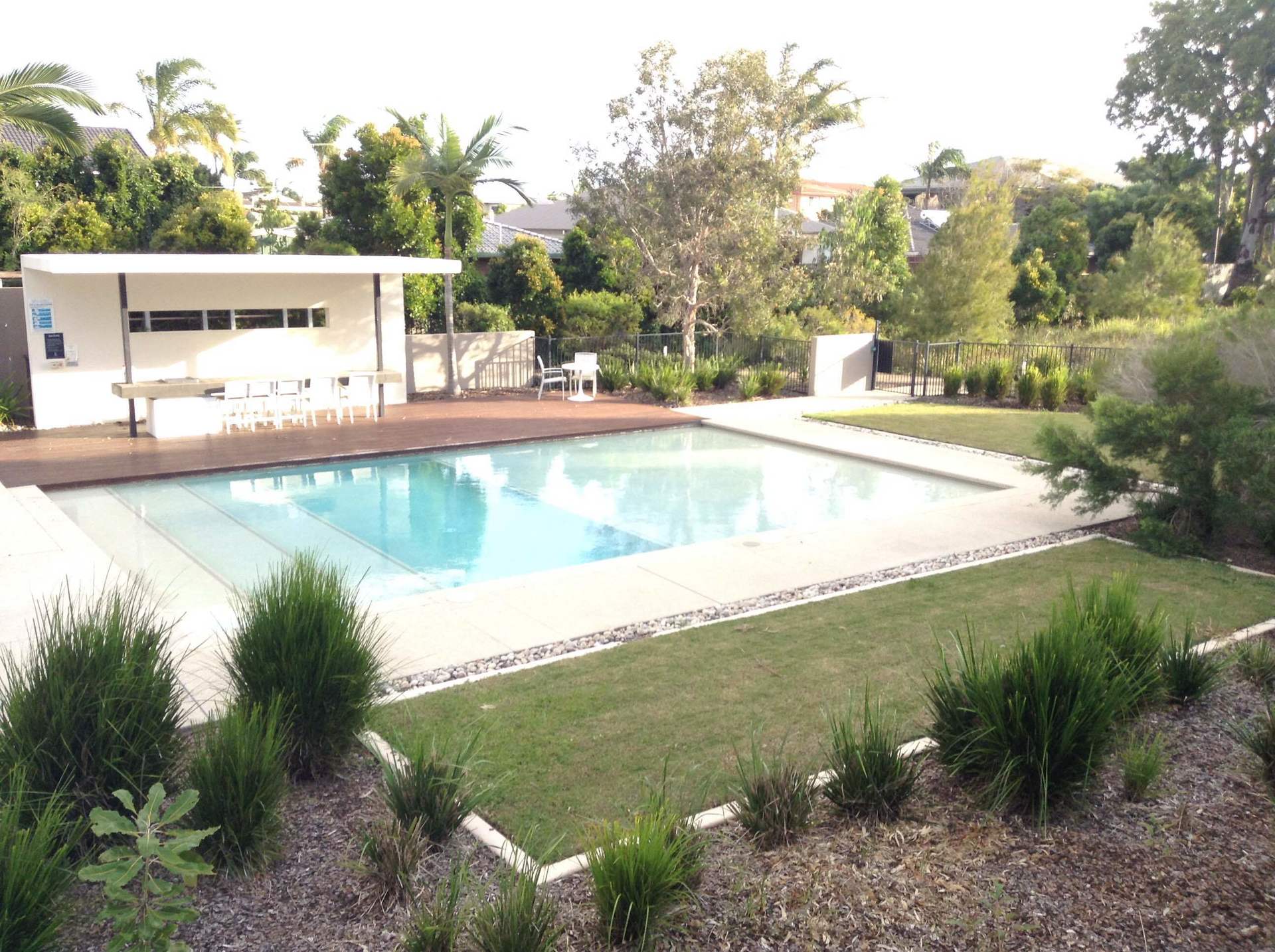 * Residents club with private cinema room for individual use, private lounges and reading rooms, games area, meeting and function rooms with outdoor terrace overlooking pools, kitchen, bar, onsite manager and security office