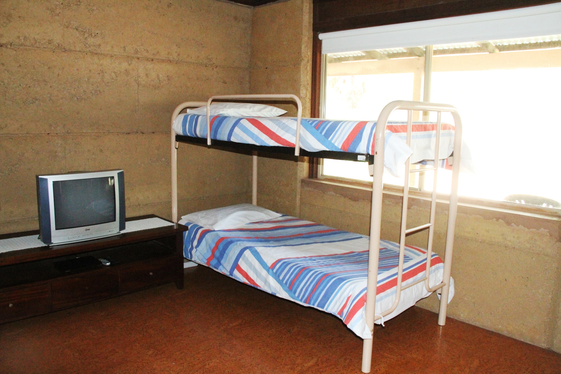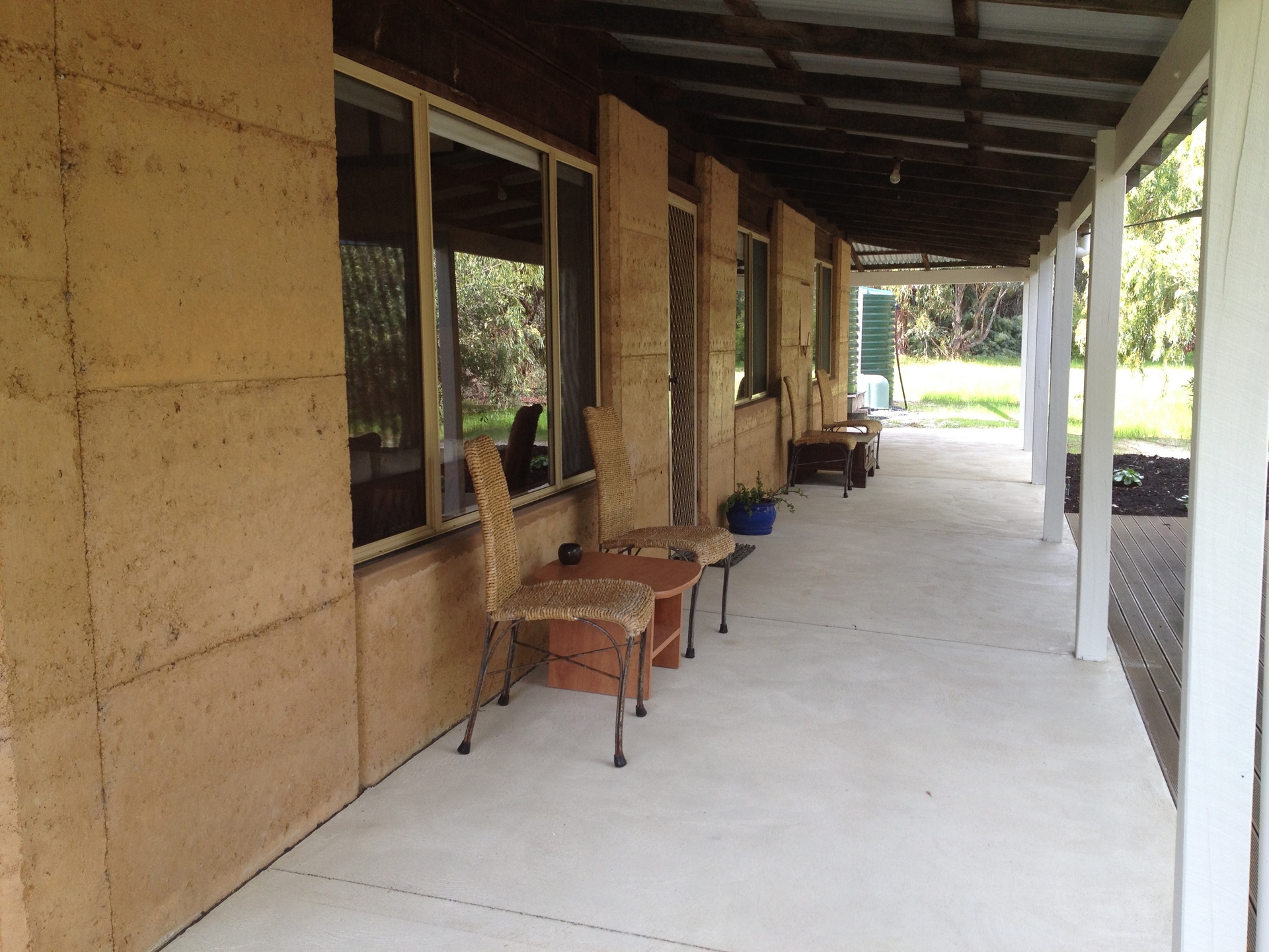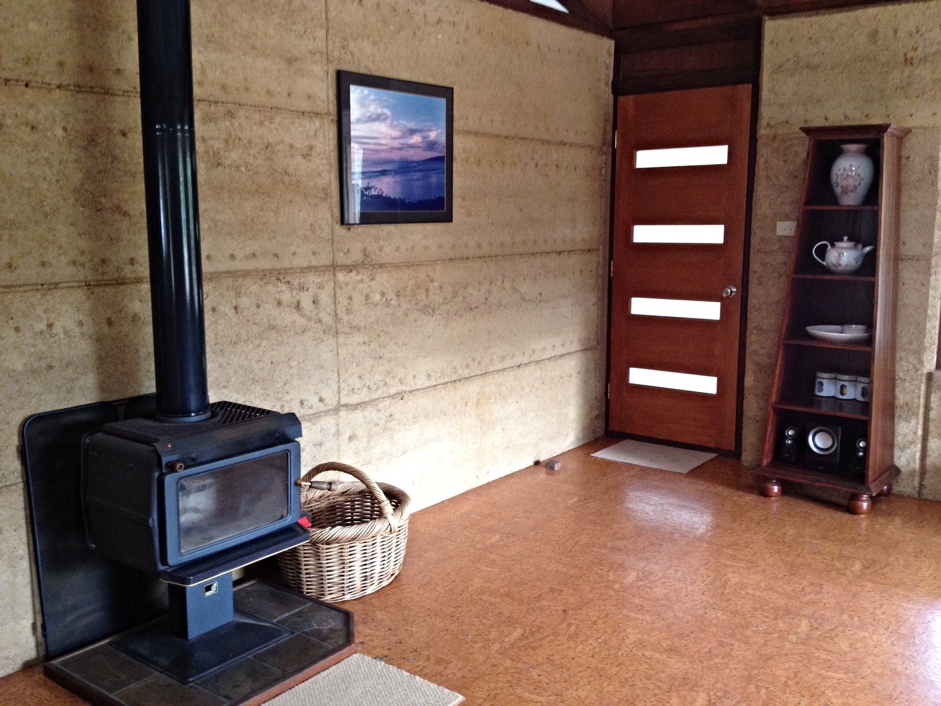 The cottage is rammed earth and colour bond, it has three bedrooms and features high cathedral ceilings throughout. It has an open plan kitchen, dining and living room with a Kent wood fire. There is ample sealed parking for cars and boats. The cottage has spacious wrap around verandahs, timber deck and shade sail, great for summer BBQs.