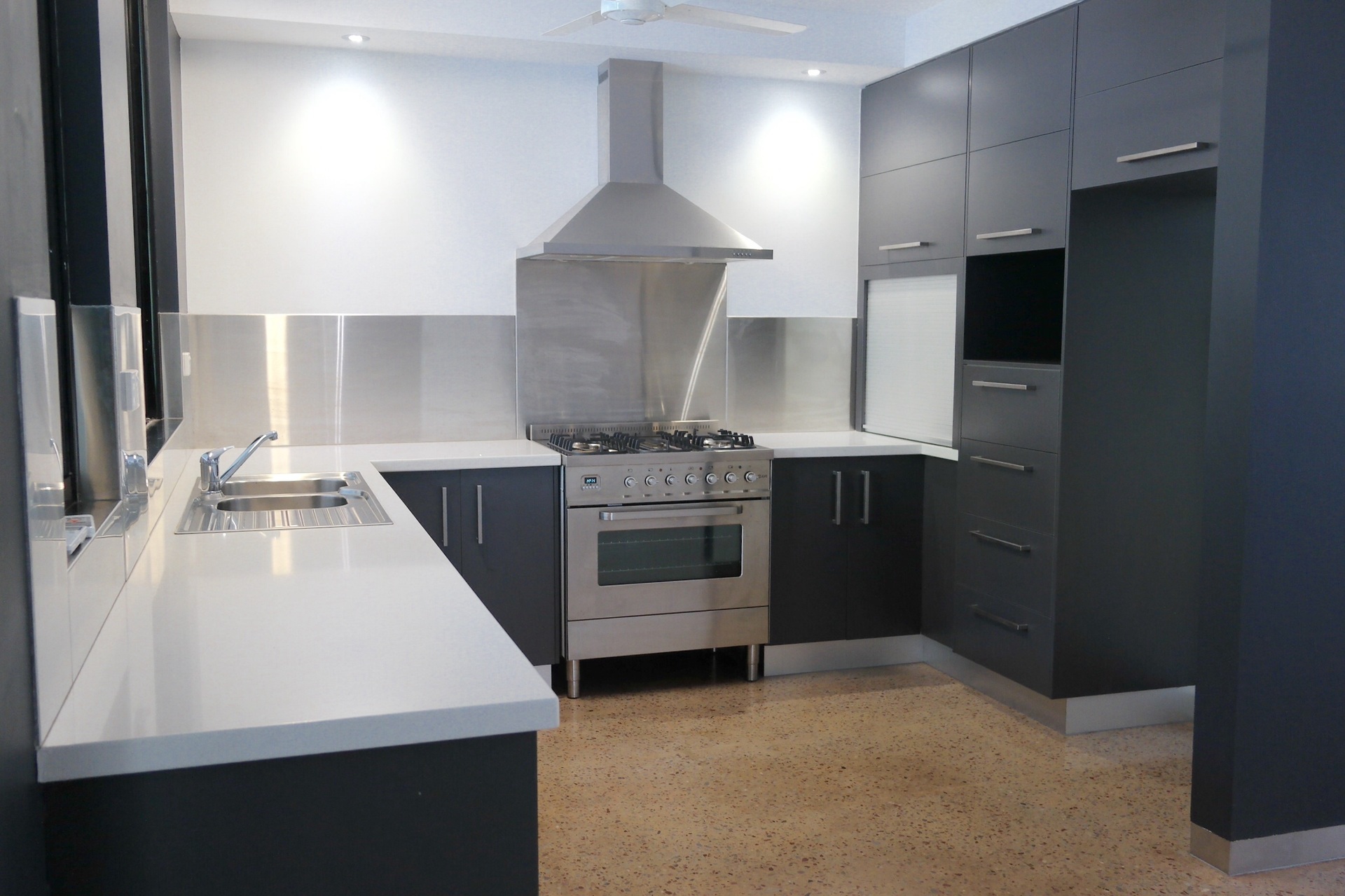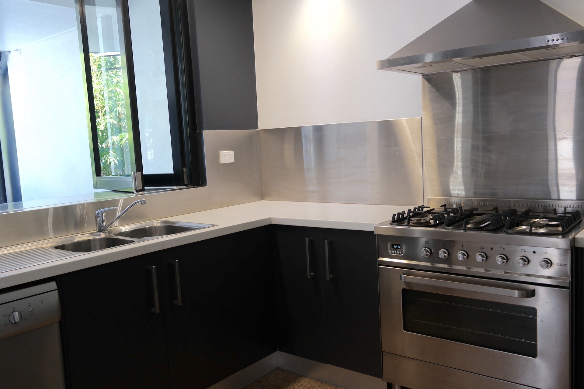 The kitchen is truly set to impress with stone benchtops, stainless steel splashbacks, ample soft close cupboard space and a premium Italian freestanding cooker (Ilve 800mm gas). A stainless steel servery with bifolds gives access to the outdoor dining area and also allows the chef to feel a part of the party! The outdoor dining area then flows seamlessly into a Mediterranean style rear courtyard with lush established garden in raised beds.