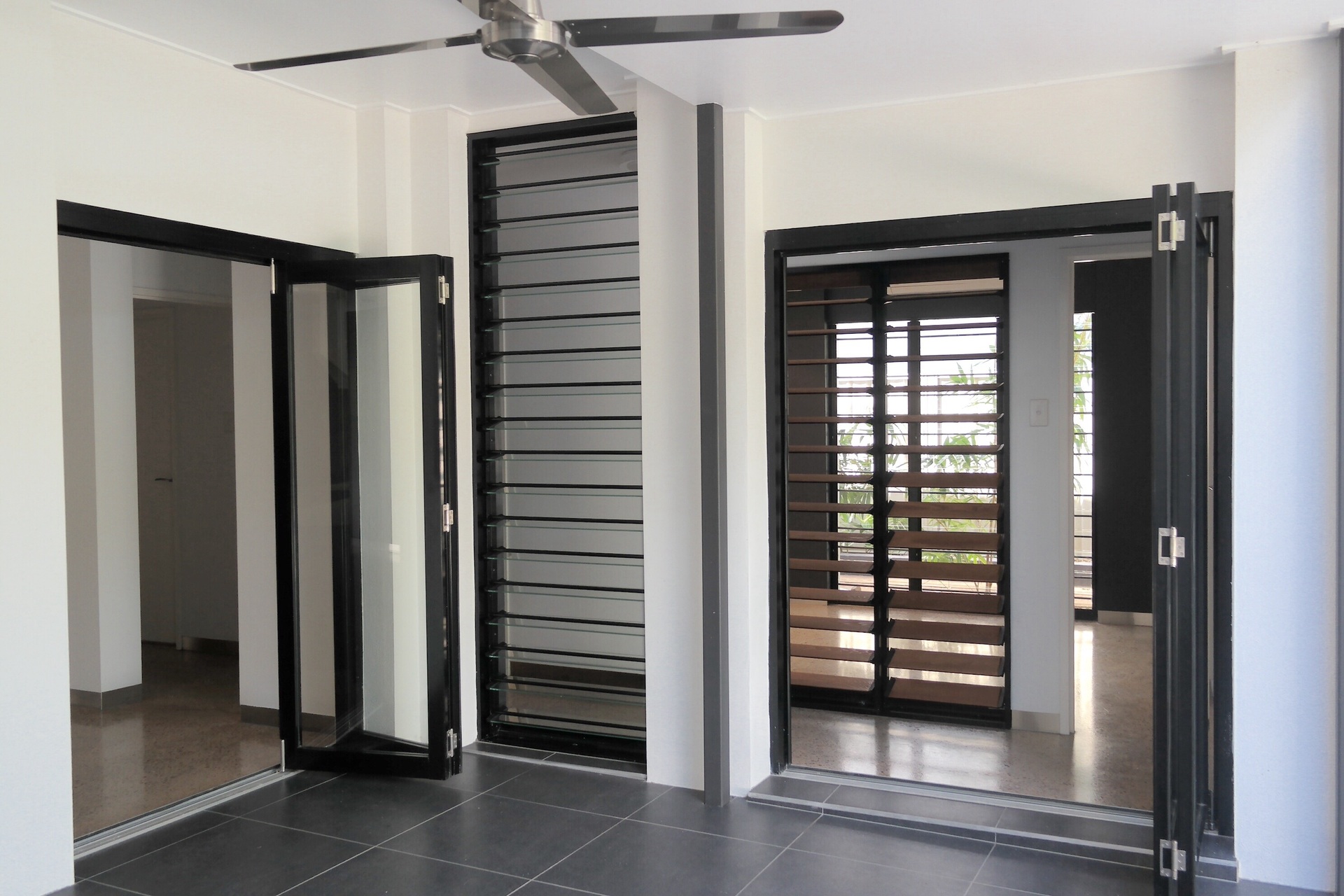 Creating an indoor/ outdoor living environment and maximising natural air flow were key priorities at the design stage. Existing floor to ceiling louvre bays were retained throughout (though totally refurbished) and bifold doors introduced to the kitchen and living space to access the undercover outdoor dining area.