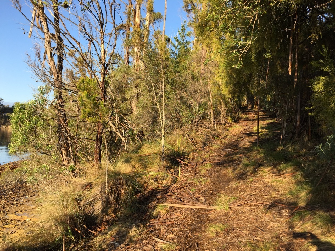 The remainder of the block is bush, mainly eucalyptus, native cherry and coastal species. There is a vehicle track down to the beach, enough room for a car and trailer, or just for a daily walk down to the waterfront. Parts of an old jetty can be seen at low tide, and there is space to store a dinghy above high water mark.
