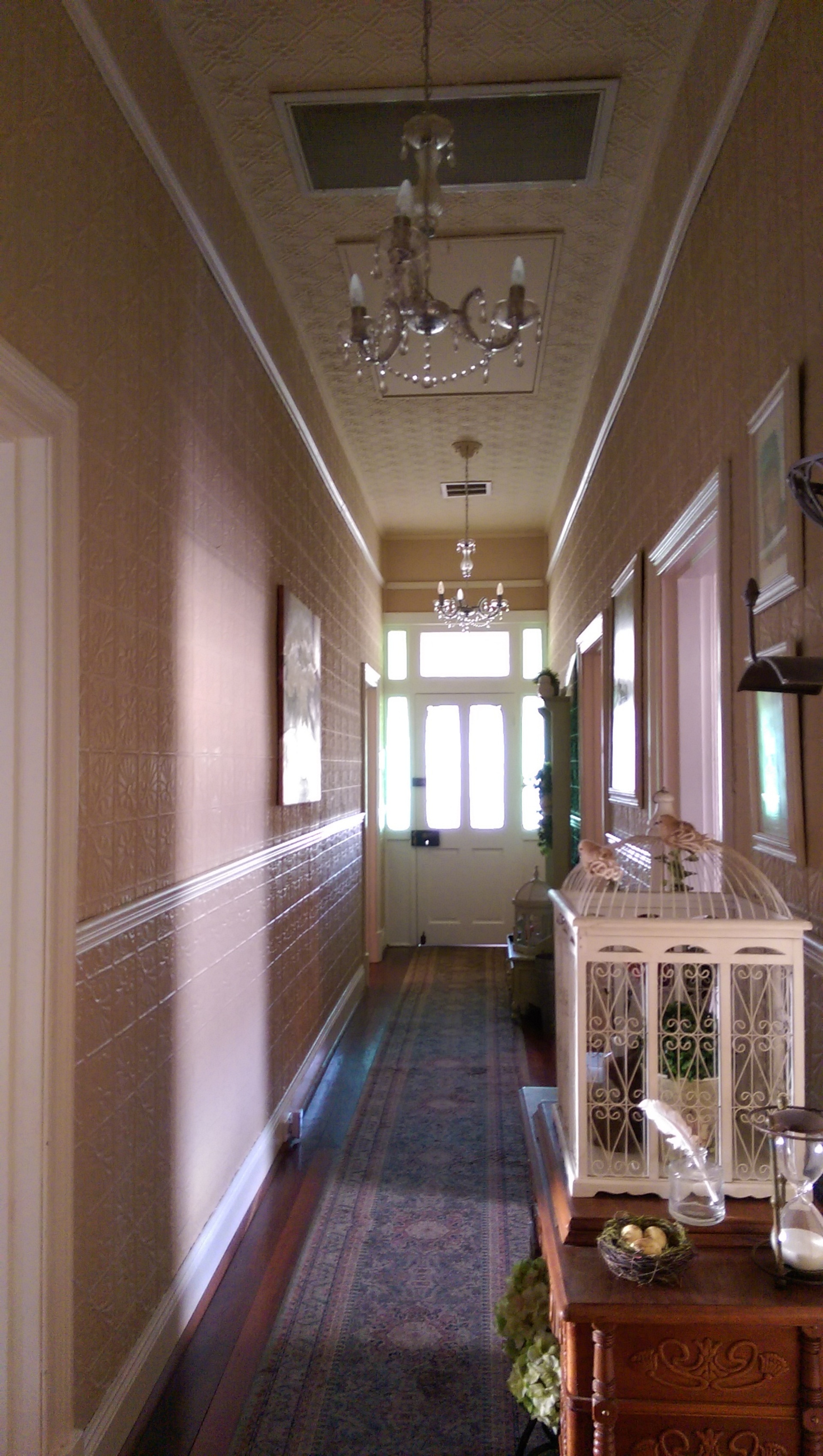 Our wonderful timber cottage is full of old world charm with unique pressed tin walls and ceilings throughout.