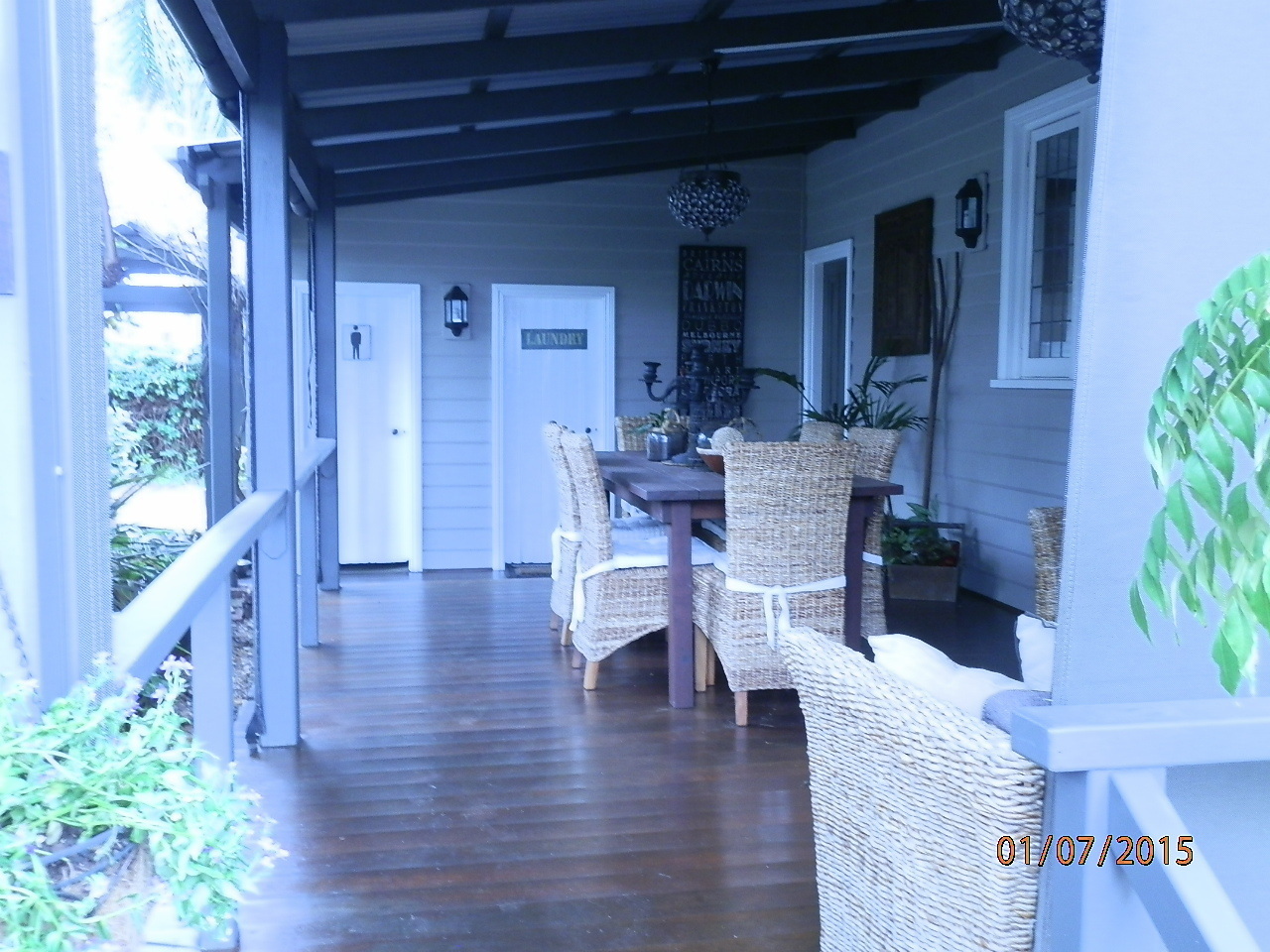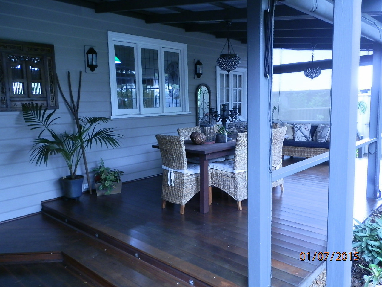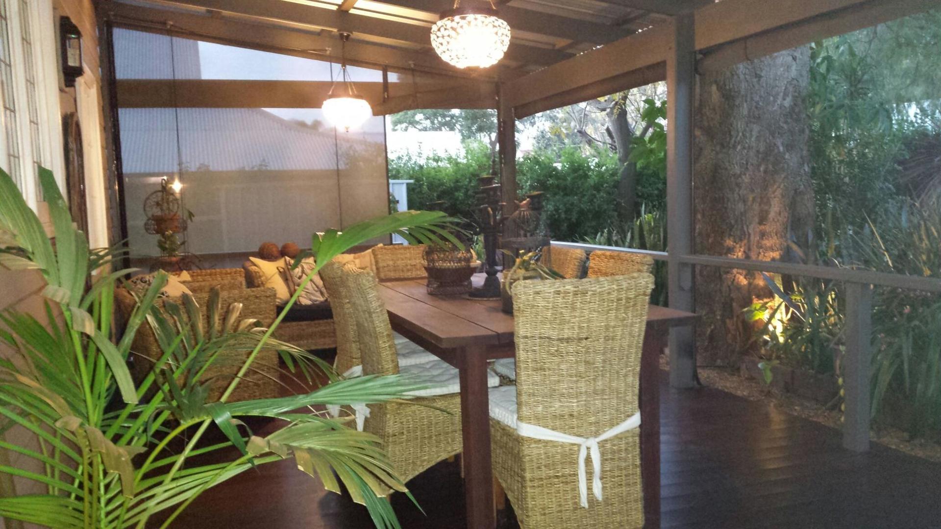Outdoor Entertaining area with timber deck and outdoor blinds