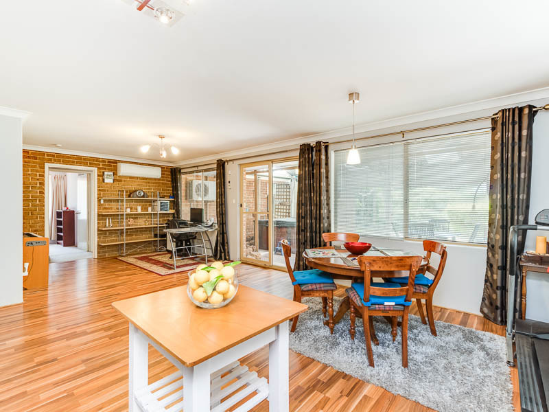 From the private front verandah you enter a large lounge room with hardwood floorboards, bay window, reverse-cycle air conditioner and a ceiling fan, followed by an open plan kitchen, dining and family room (currently used as an office), again with large reverse-cycle air conditioner. The contemporary kitchen features a built-in electric ceramic cooktop, oven, dishwasher and plenty of cupboard space.