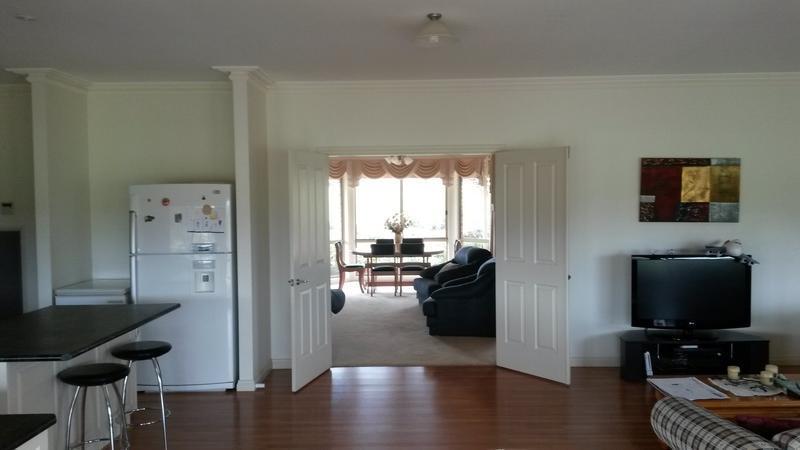 The modern kitchen comprises of a ceramic cooktop, dishwasher, double oven, over size large island bench, plenty of cupboard space and a large walk in pantry with ample shelving