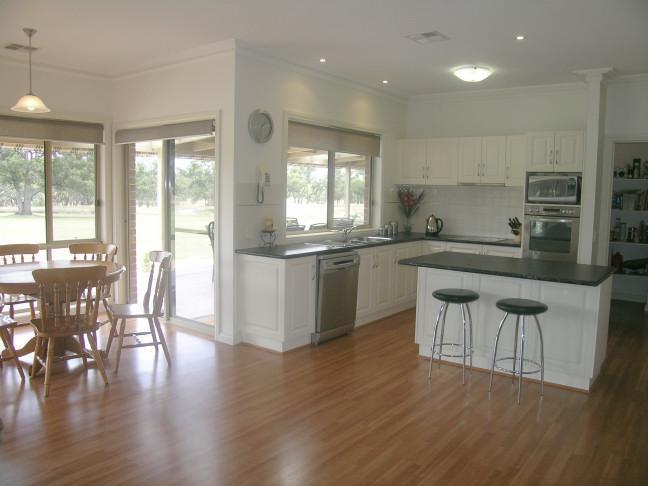Further enhancing the open plan spacious living design, sliding doors off the family room meals / dining area open directly onto a large merbau decking area with 6 seat Jacuzzi with expansive open rural views across farm land and the creek which meanders across the properties back boundary from which the estate takes its name. Sit back on a warm summers evening in the hot tub and enjoy the peace and quiet.