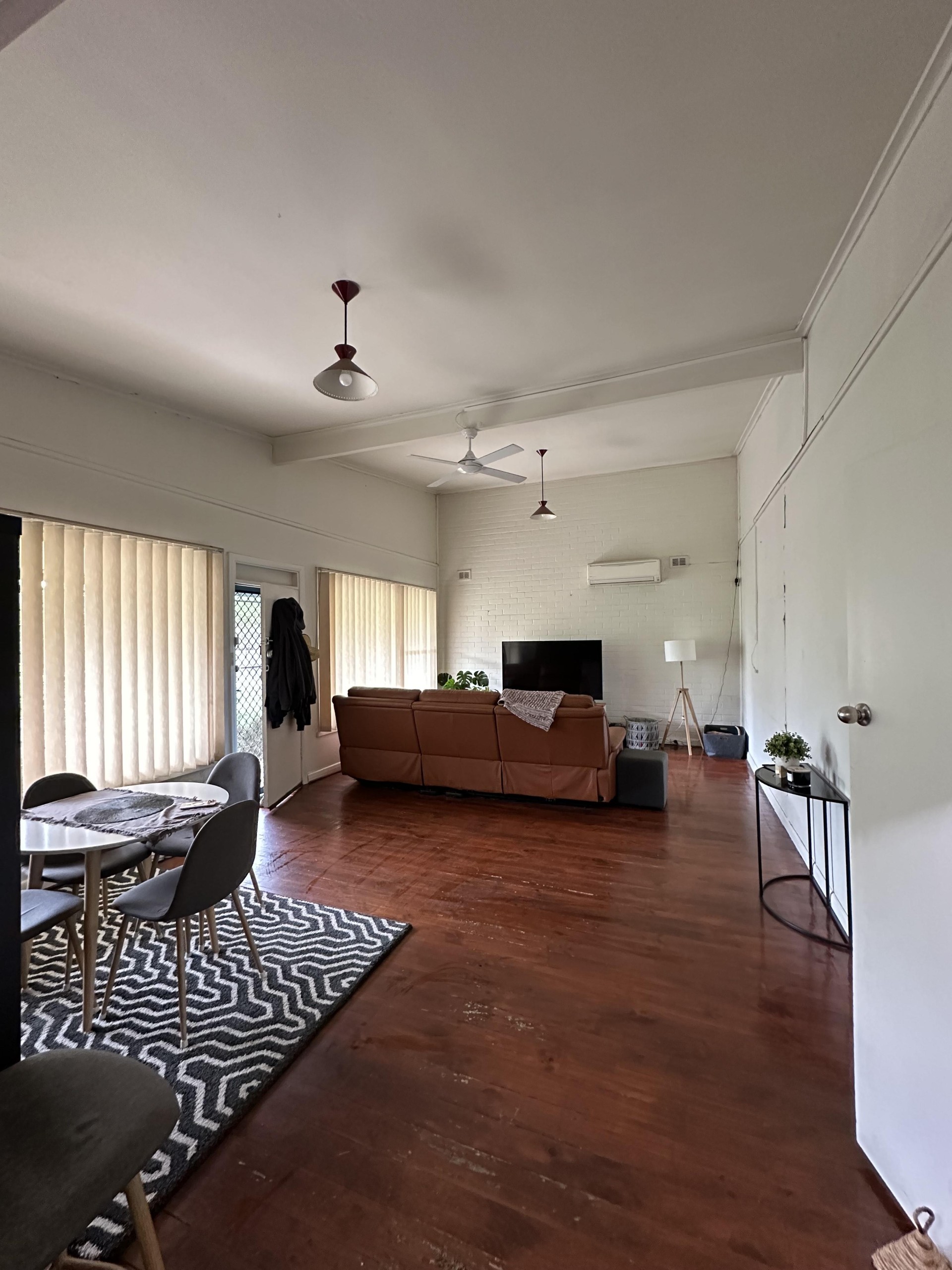 - Reverse cycle heating and cooling in living area and main bedroom