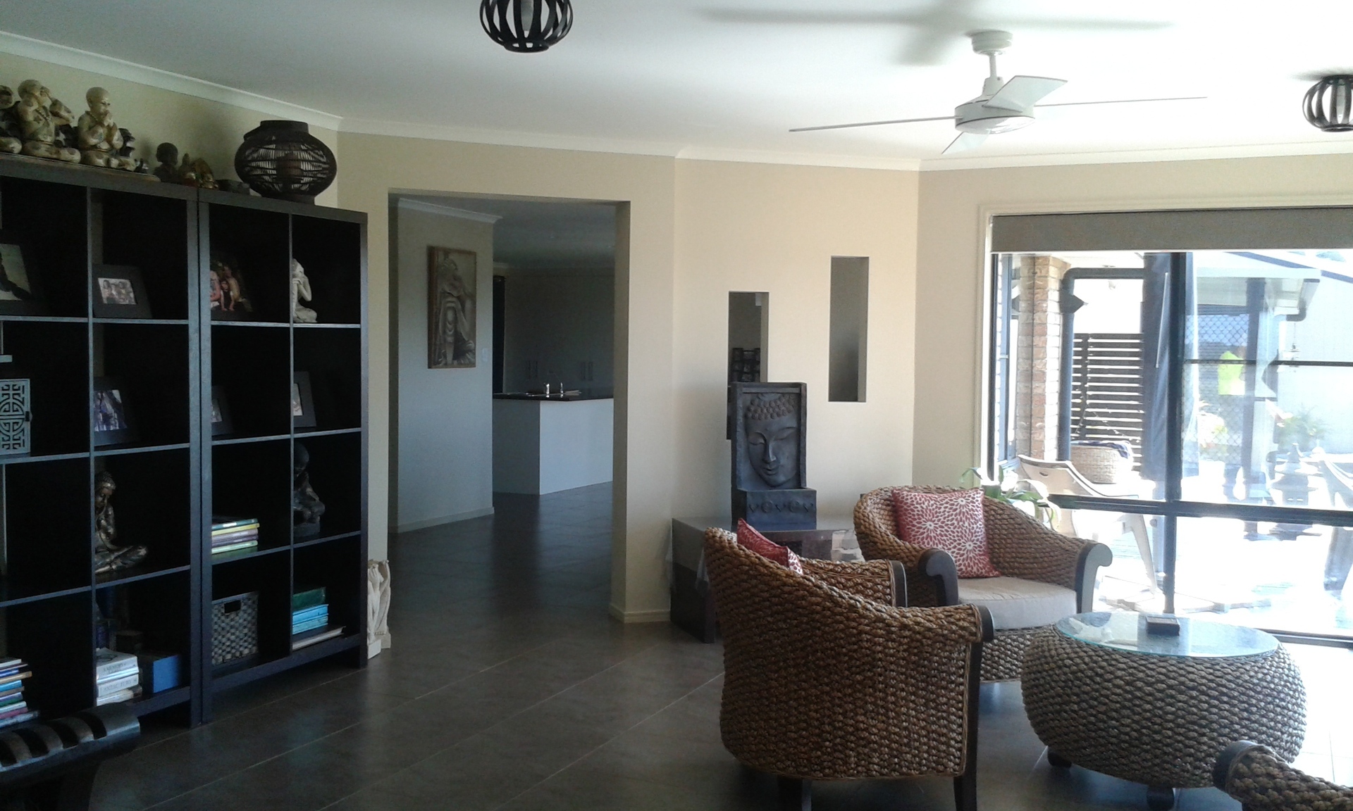 Rumpus room: Large, fully tiled, air conditioned, loads of storage cupboards & fan.