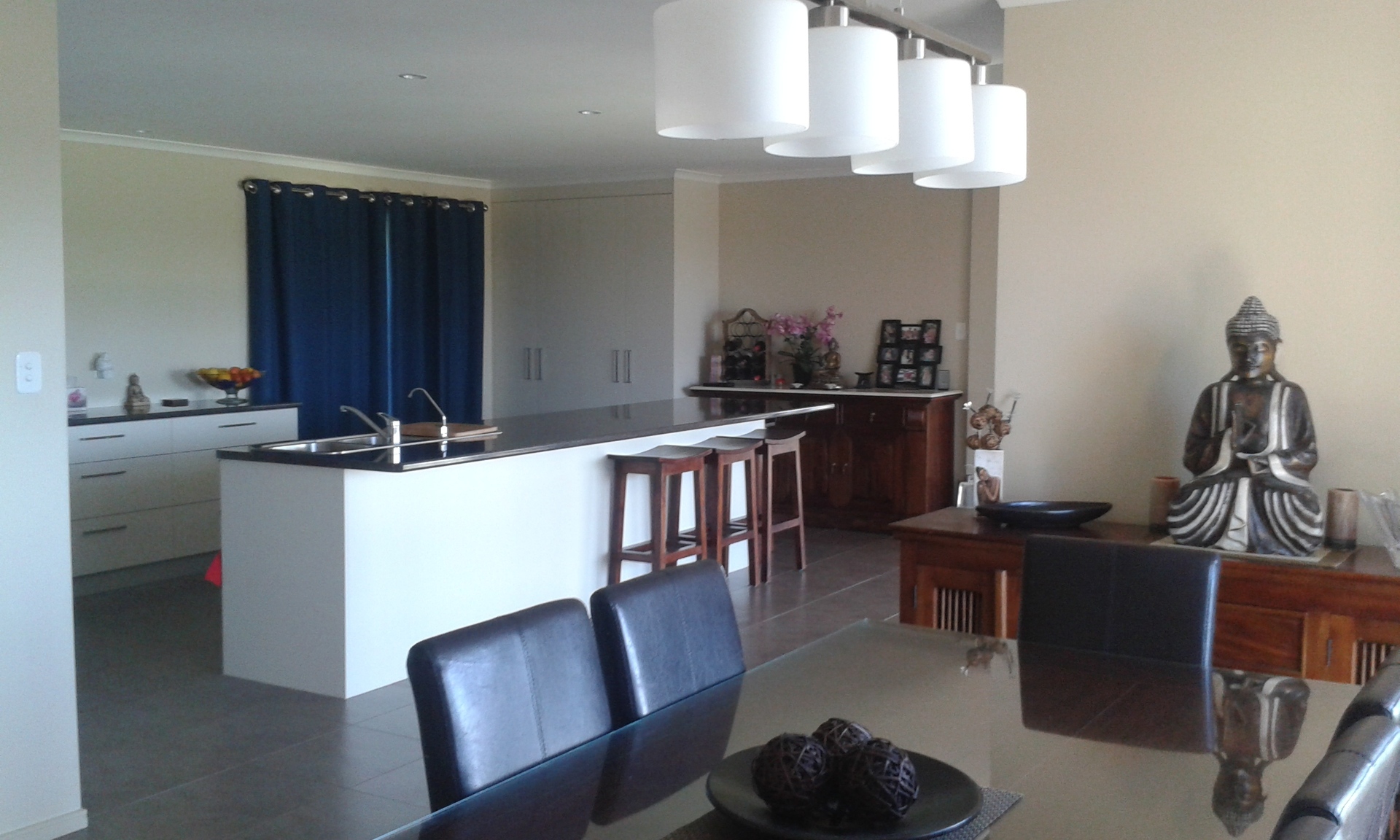Kitchen: Modern, open plan incorporating new 900mm stove - gas cooktop/electric oven.3.5m stylish island bench. Plenty of storage cupboards, walk in pantry, dishwasher & aircon.