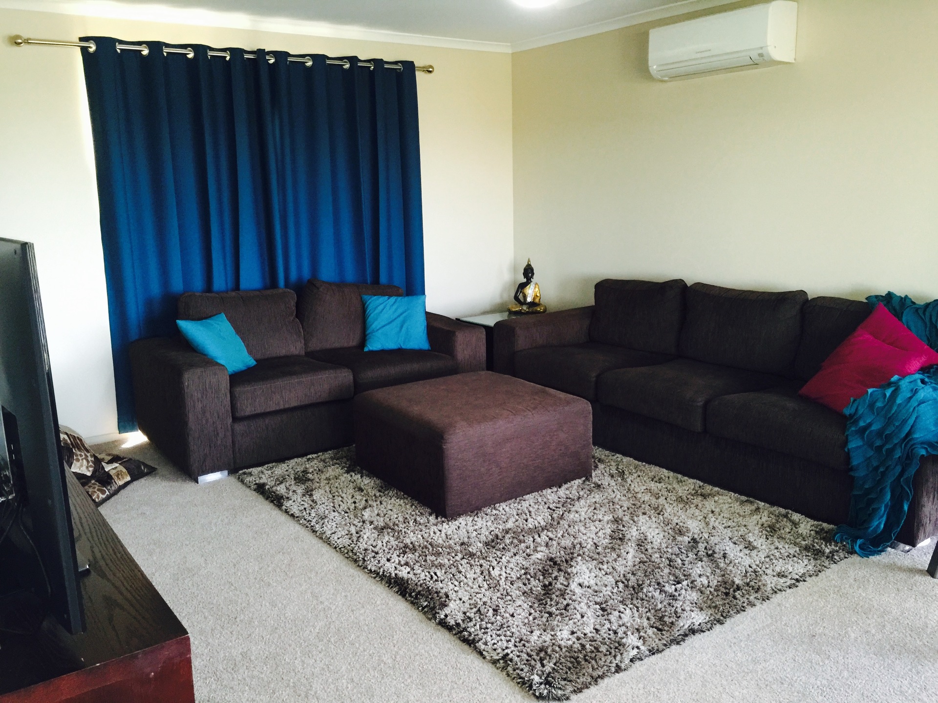 Lounge room: Carpeted, airconditioned & fan.
