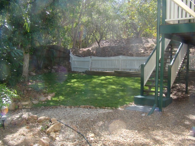 New lawns, with automatic watering, front and back offer freedom for the kids.
