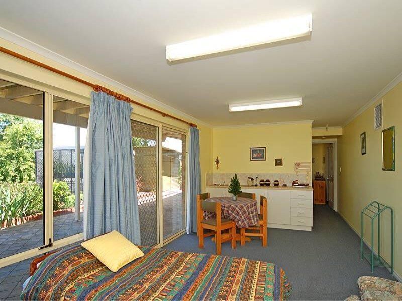 Downstairs is a fully contained home with lounge/dining and kitchenette, a small but convenient bathroom, large bedroom and even a home gym. Outdoors is a garden shed and a shade house, some low maintenance garden areas and a paved ramp to the upstairs level if required.