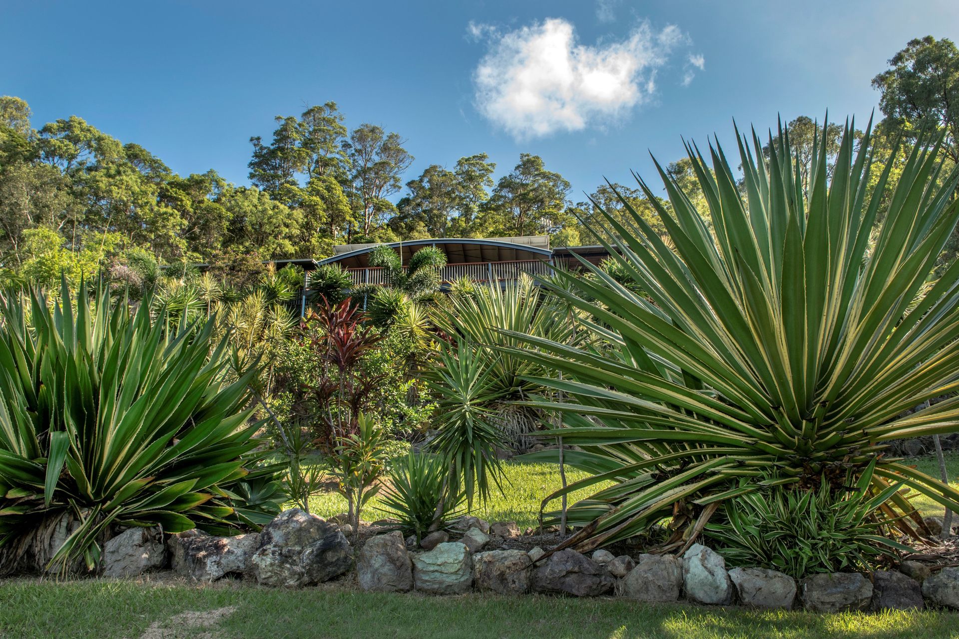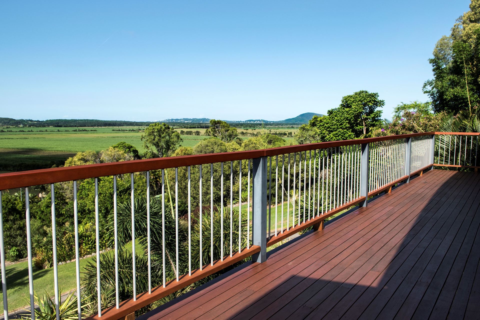 This architecturally designed home is situated on an elevated 2.5 acre block to take full advantage of sweeping 180 degree views over Sugar Cane Fields to Coolum.