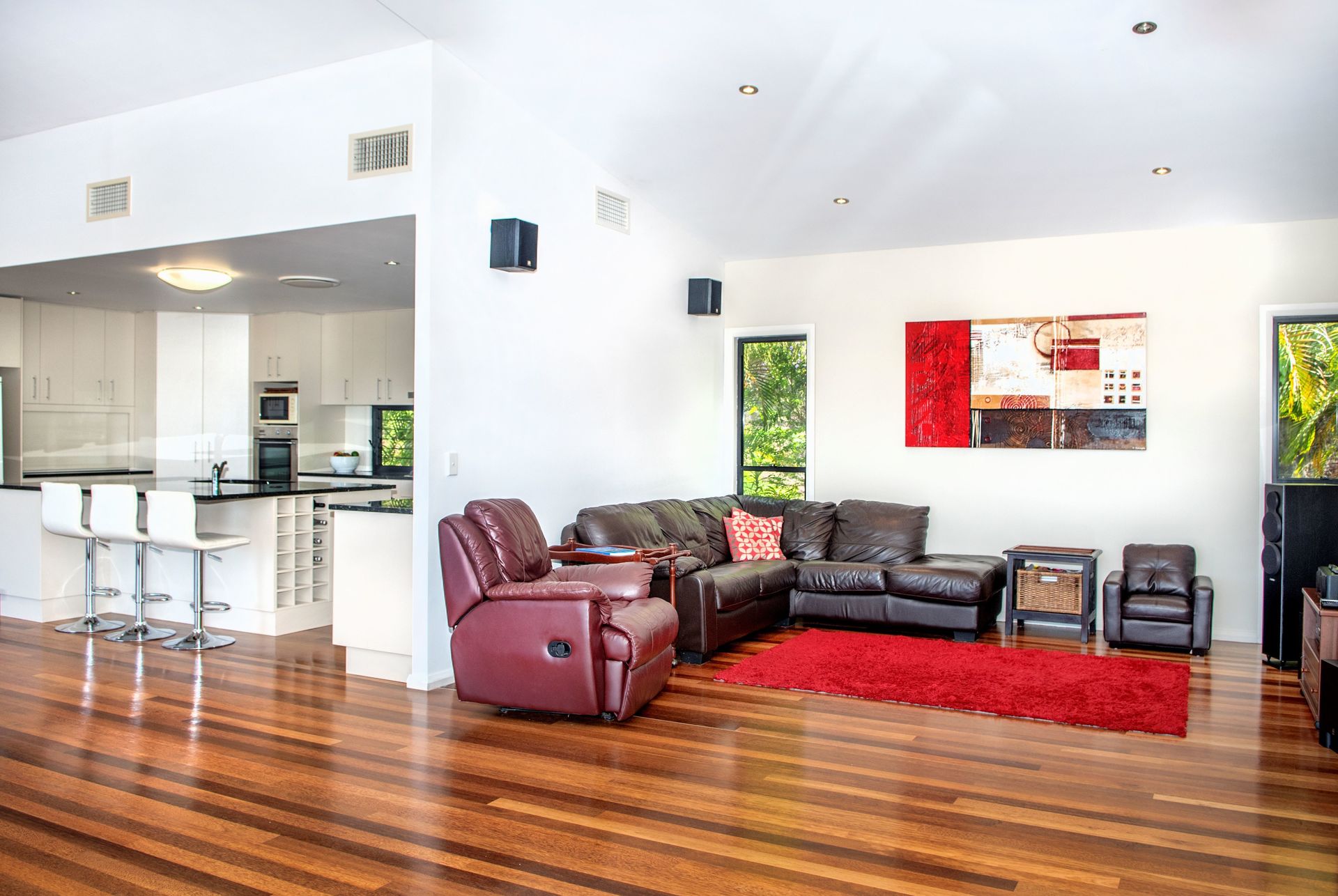 - 4 metre high cathedral cielings with high louvered windows for improved ventilation