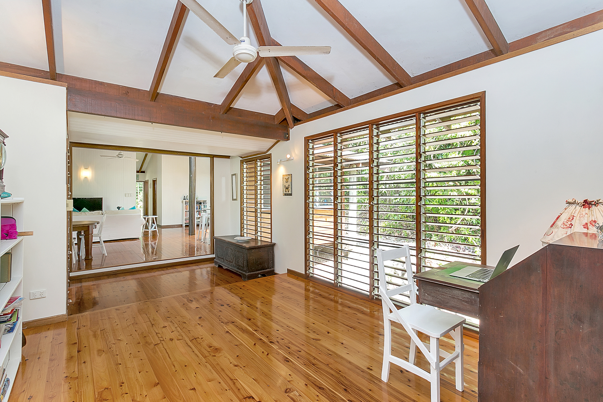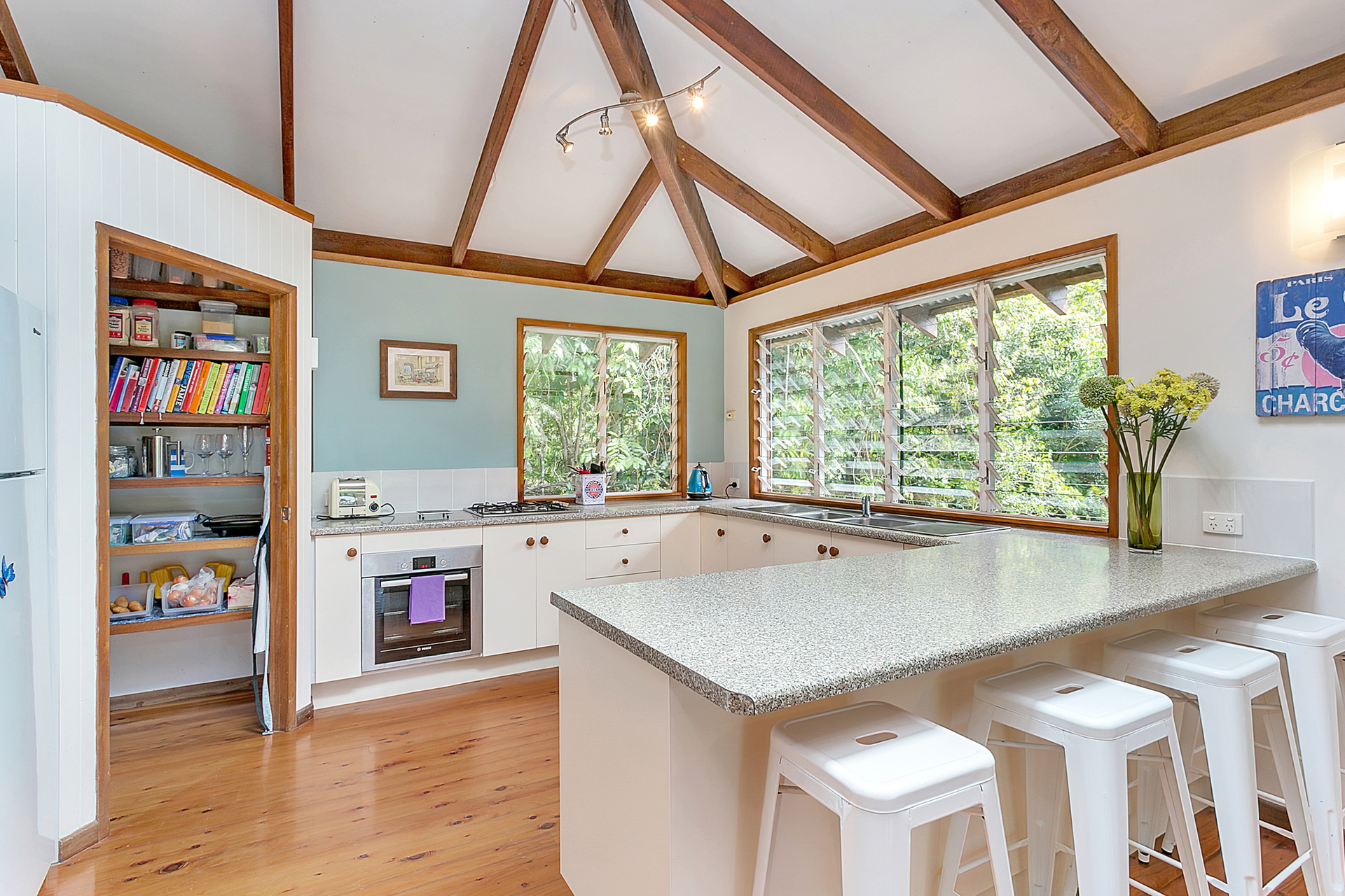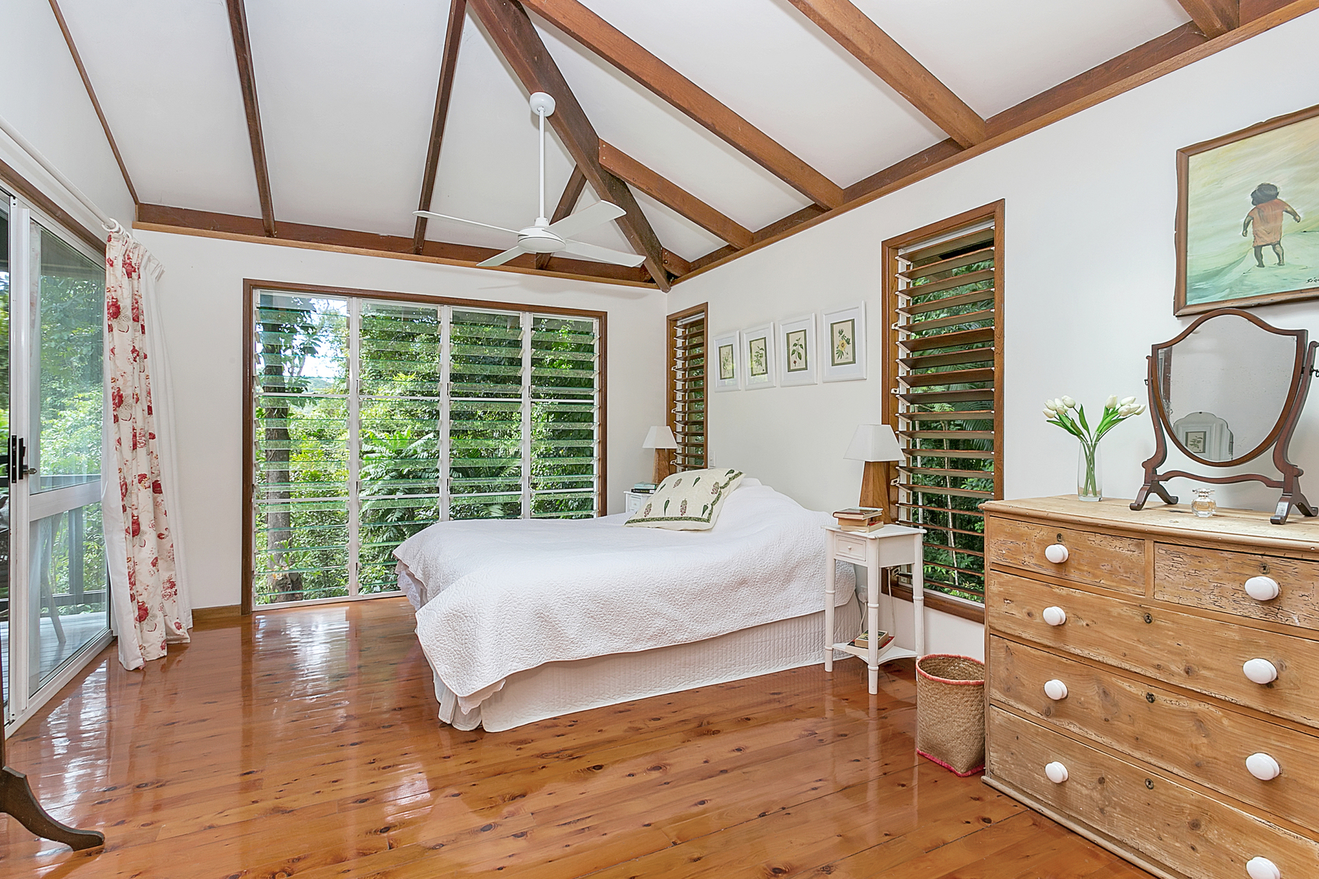 This stunning two-storey timber pole home, designed by renowned architect Chris van Dyke, is nestled in rainforest and set on a large private block.