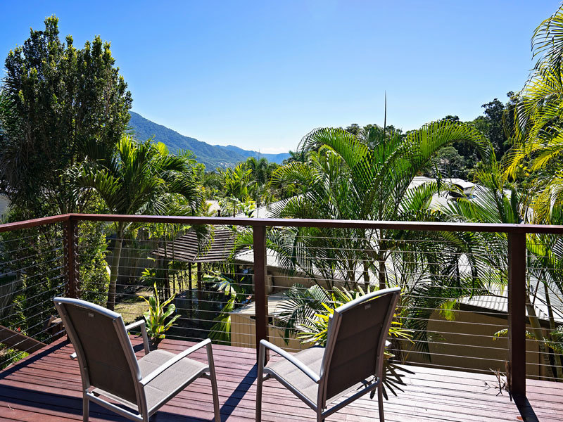 Sit up overlooking the tree lined Brinsmead valley and Barron Gorge from the elevated dual level deck.