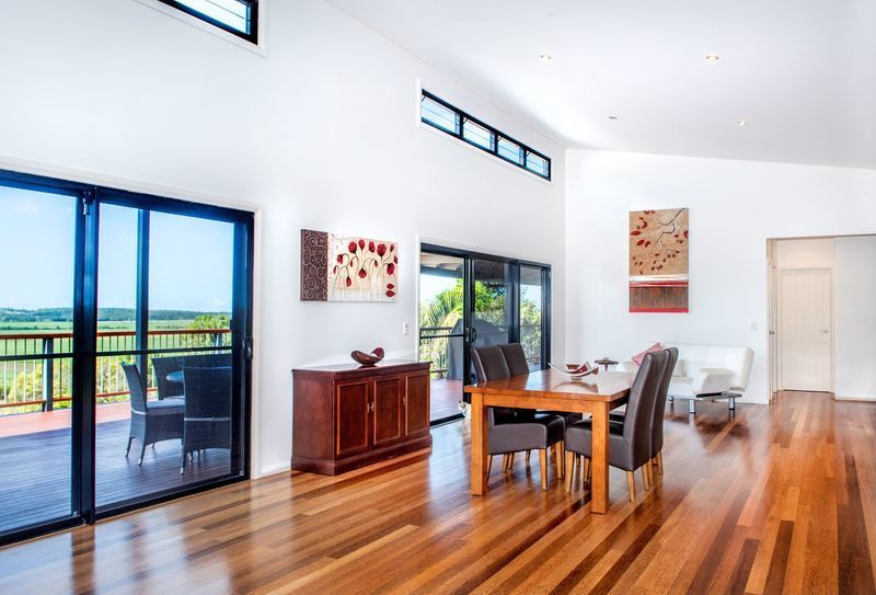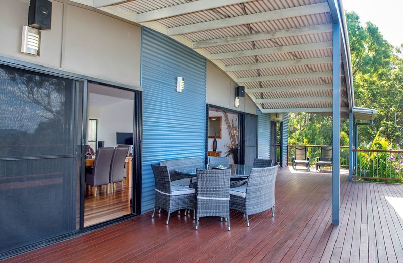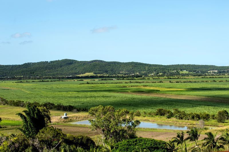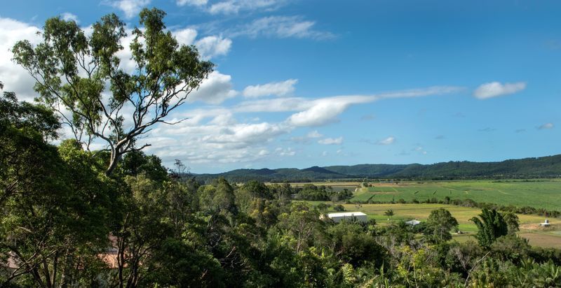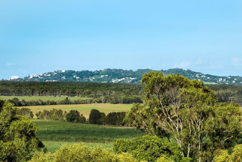 This architecturally designed home is situated on an elevated 2.5 acre block to take full advantage of sweeping 180 degree views over Sugar Cane Fields to Coolum.