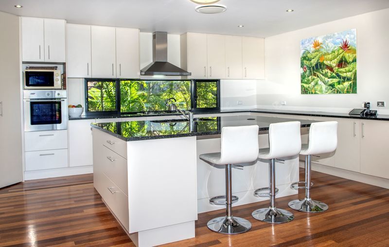 The kitchen has quality fittings, 900mm gas top stove, granite benchtops and a large island bench big enough for the entire family to eat at whilst enjoying the view. Downstairs features the fourth bedroom/gym, a large office to suit a small business, third bathroom and large laundry. There is plumbing in place to easily convert this area to a dual living arrangement. A large storage area underneath the house can also be converted to another room or gym. This home is built to take advantage of the Coasts relaxed lifestyle... so come along and inspect, you will be impressed.